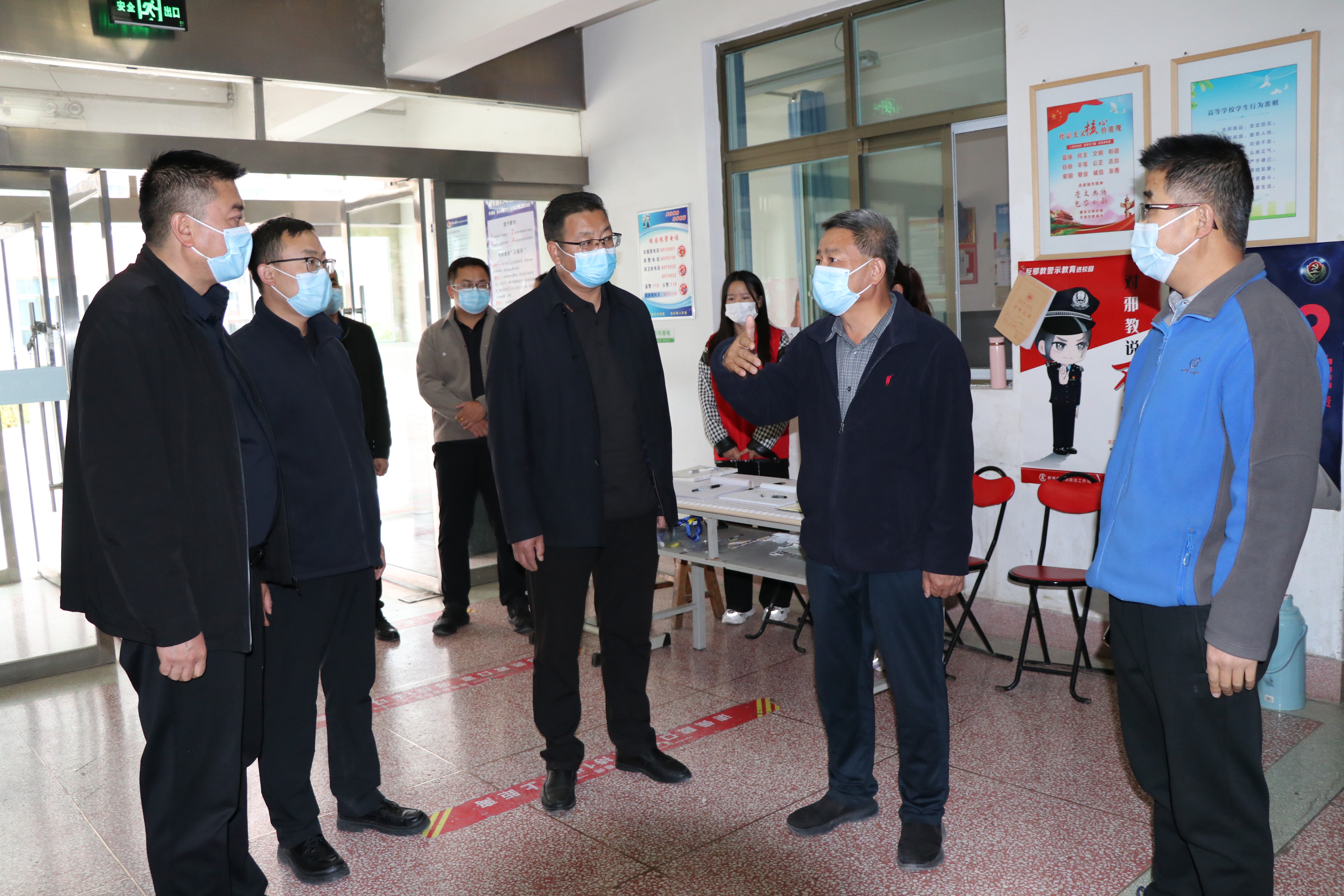為進(jìn)一步加強(qiáng)校園疫情防控和安全穩(wěn)定工作,排查風(fēng)險(xiǎn)隱患,筑牢安全防線,10月14日,黨委書記、校長趙明,黨委委員,紀(jì)委書記、監(jiān)察專員陳曉煜一行對校園內(nèi)重點(diǎn)場所進(jìn)行督導(dǎo)檢查。學(xué)生工作處、安全保衛(wèi)處等相關(guān)部門負(fù)責(zé)人一同檢查。