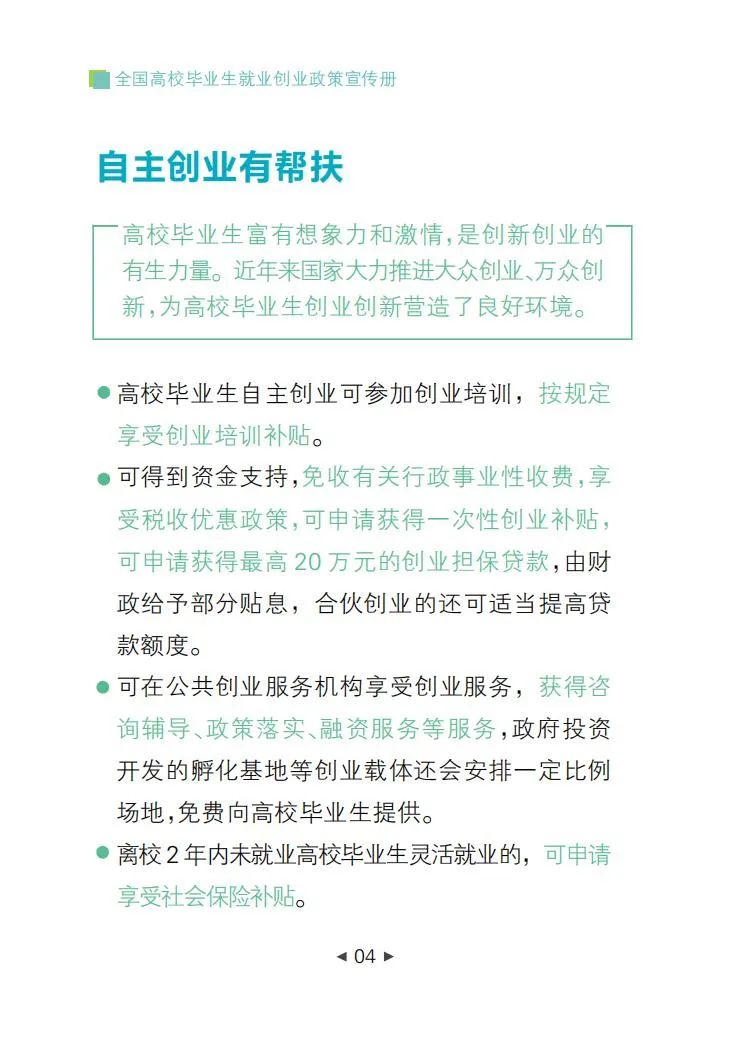 全國高校畢業(yè)生就業(yè)創(chuàng)業(yè)政策宣傳冊