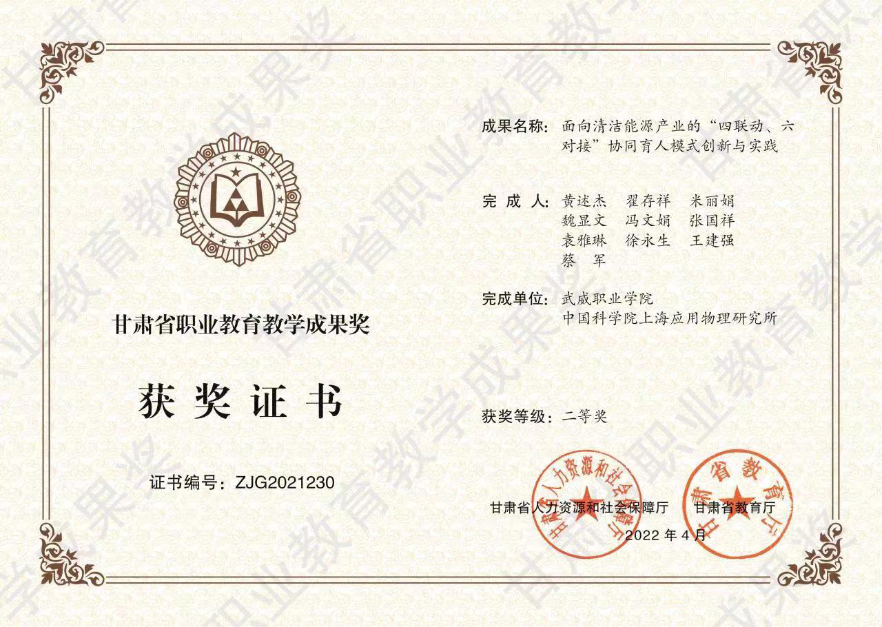 中科低碳新能源技術學院榮獲2021年甘肅省職業(yè)教育教學成果獎二等獎