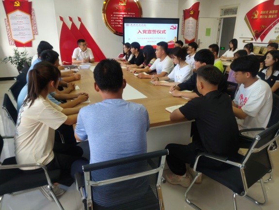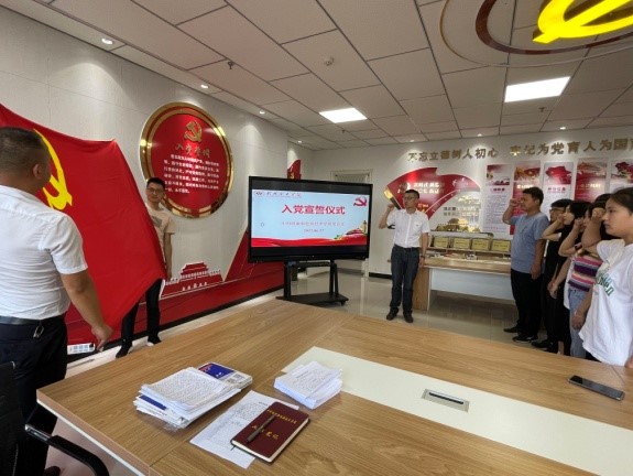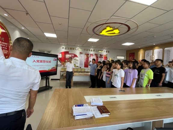 在“七一”來臨之際,為加強黨員教育、增強黨性觀念,中科低碳新能源技術學院黨總支于2022年6月27日下午在能源樓六樓黨員活動室組織開展了新黨員入黨宣誓儀式。學院黨總支全體黨員以及師生預備黨員參加宣誓儀式。
