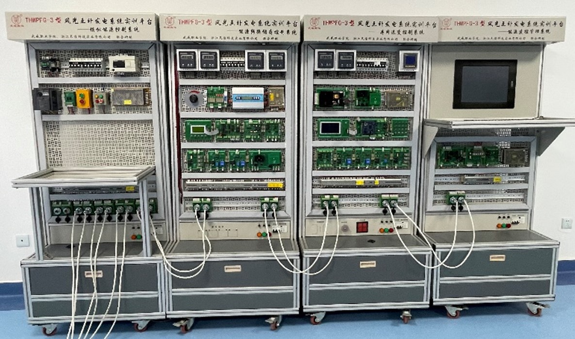 本實(shí)訓(xùn)室擁有風(fēng)光互補(bǔ)發(fā)電實(shí)訓(xùn)系統(tǒng)1套,其主要由光伏供電裝置、光伏供電系統(tǒng)、風(fēng)力供電裝置、風(fēng)力供電系統(tǒng)、模擬能源控制系統(tǒng)、能源轉(zhuǎn)換儲(chǔ)存控制系統(tǒng)、并網(wǎng)逆變控制系統(tǒng)、能源監(jiān)控管理系統(tǒng)組成,各裝置和系統(tǒng)具有獨(dú)立的功能,可以組合成光伏發(fā)電實(shí)訓(xùn)系統(tǒng)、風(fēng)力發(fā)電實(shí)訓(xùn)系統(tǒng)。本實(shí)訓(xùn)室主要服務(wù)于光伏工程技術(shù)及相近專業(yè)開(kāi)設(shè)的光伏發(fā)電技術(shù)分析與應(yīng)用、光伏材料的加工與檢測(cè)、光伏電池的生產(chǎn)加工與維護(hù)、光伏控制器拆裝與維修、光伏器件的組裝與維護(hù)等課程。