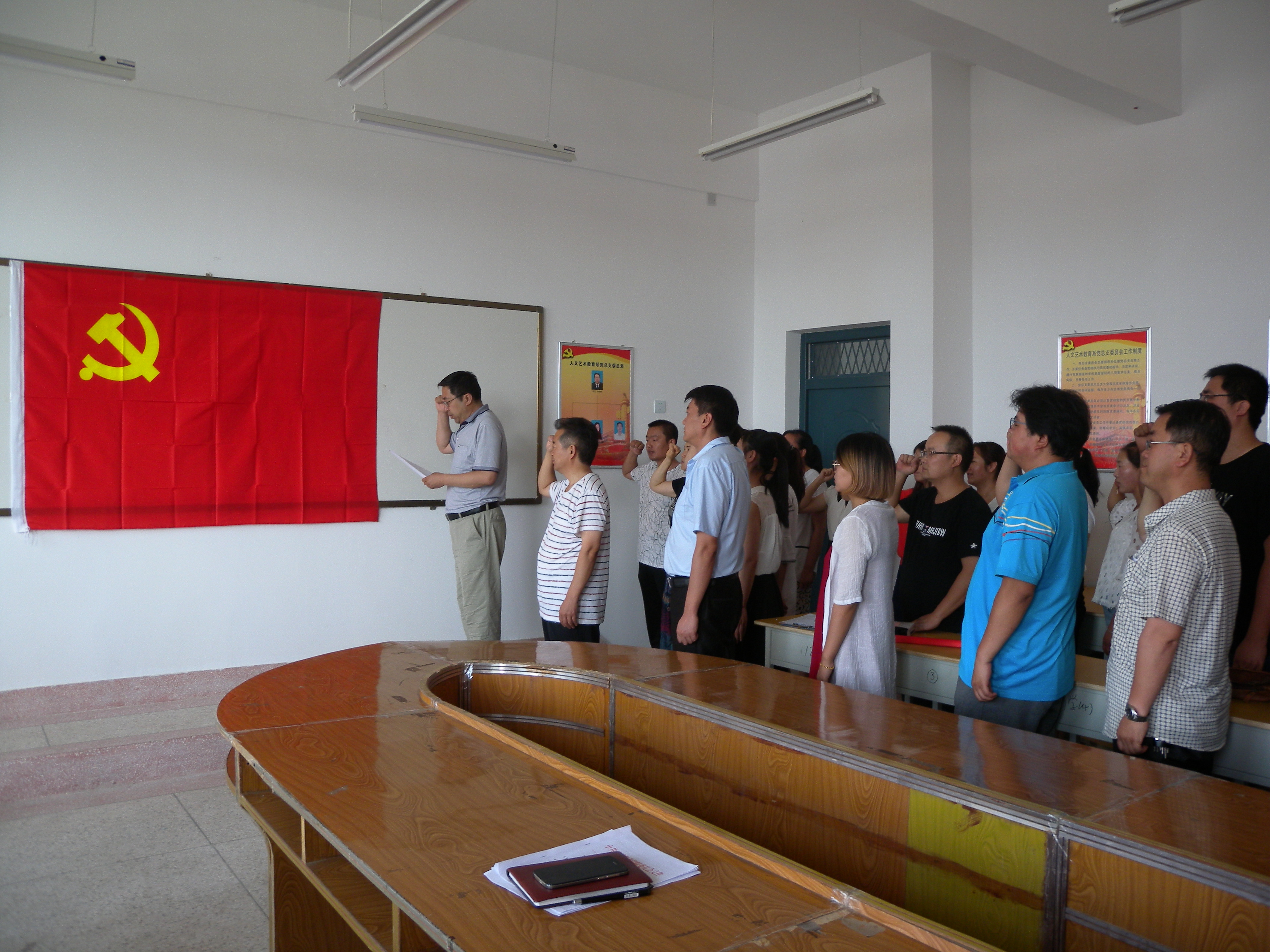 黨總支書記胡靜峰帶領全體黨員面對鮮紅的黨旗,重溫入黨誓詞:“我志愿加入中國共產黨,擁護黨的綱領,遵守黨的章程……”。莊嚴肅穆的重溫入黨誓詞活動,使每一位黨員再一次接受心靈的洗禮,進一步堅定了立場信念。