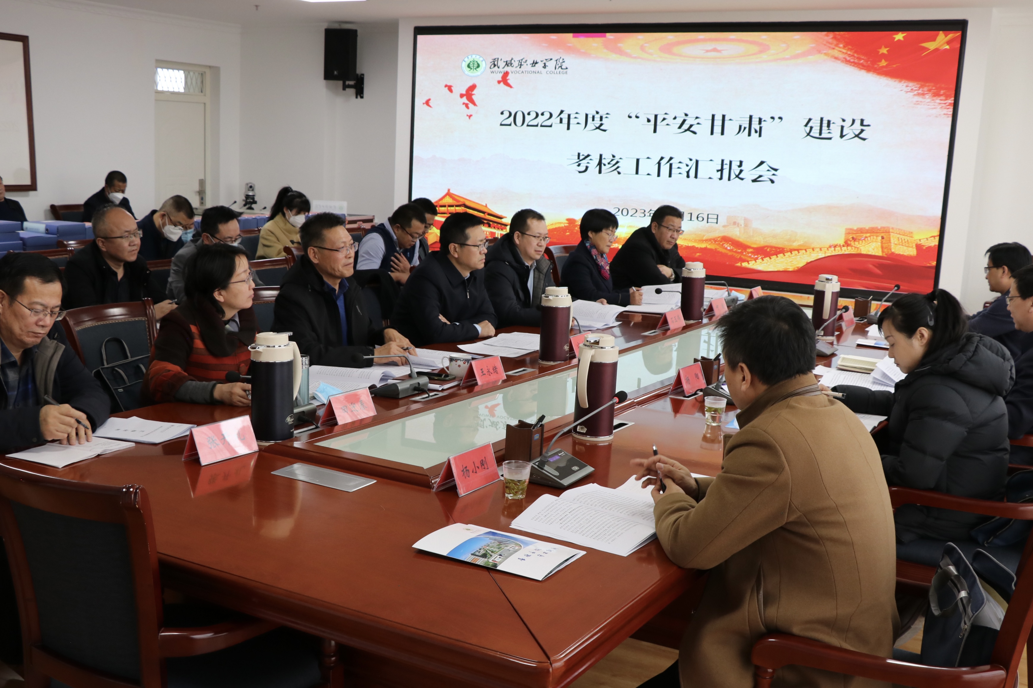 2月16日下午,平安甘肅建設(shè)第七考評(píng)組組長(zhǎng)、省信訪局副局長(zhǎng)劉全生帶領(lǐng)考評(píng)組一行來(lái)學(xué)校,檢查考核學(xué)校2022年度平安建設(shè)工作。學(xué)校黨委委員、副校長(zhǎng)王永緒主持會(huì)議,武威市市委政法委副書記寧生剛、在家校領(lǐng)導(dǎo)班子成員,各部門、二級(jí)學(xué)院負(fù)責(zé)人參加匯報(bào)會(huì)。