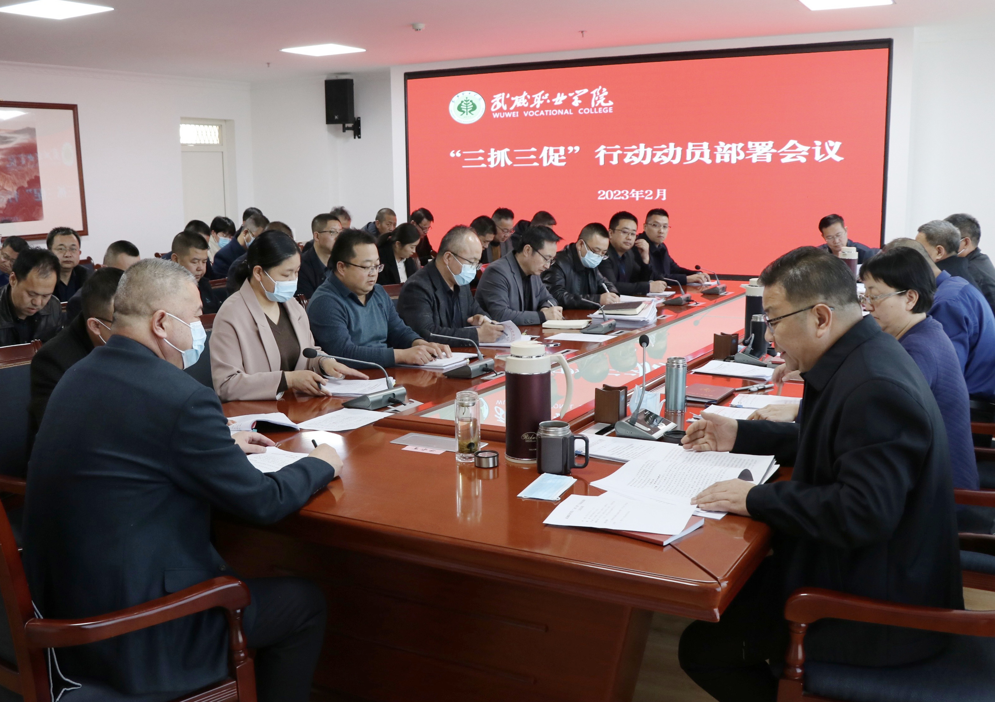 會議傳達學(xué)習了甘肅省、武威市和全省教育系統(tǒng)“三抓三促”行動動員部署會議精神,并對學(xué)校開展“三抓三促”行動進行安排部署。