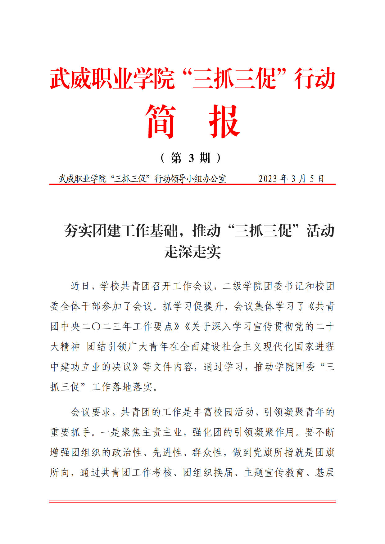 武威職業(yè)學(xué)院“三抓三促”行動(dòng)簡(jiǎn)報(bào)第3期