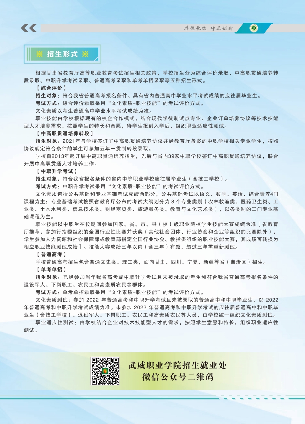 武威職業(yè)學(xué)院2023年招生簡(jiǎn)章