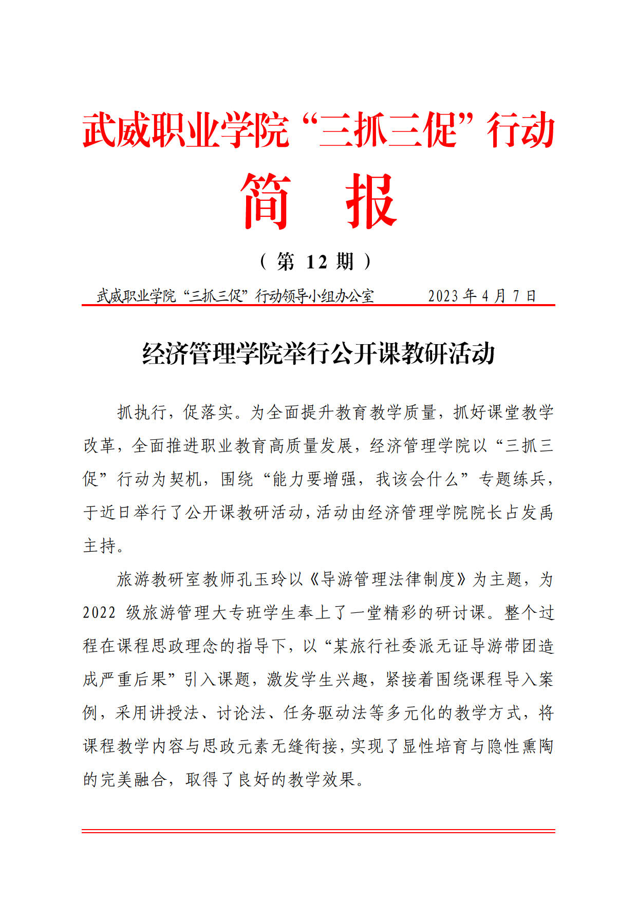 簡(jiǎn)報(bào)第12期:經(jīng)濟(jì)管理學(xué)院舉行公開課教研活動(dòng)