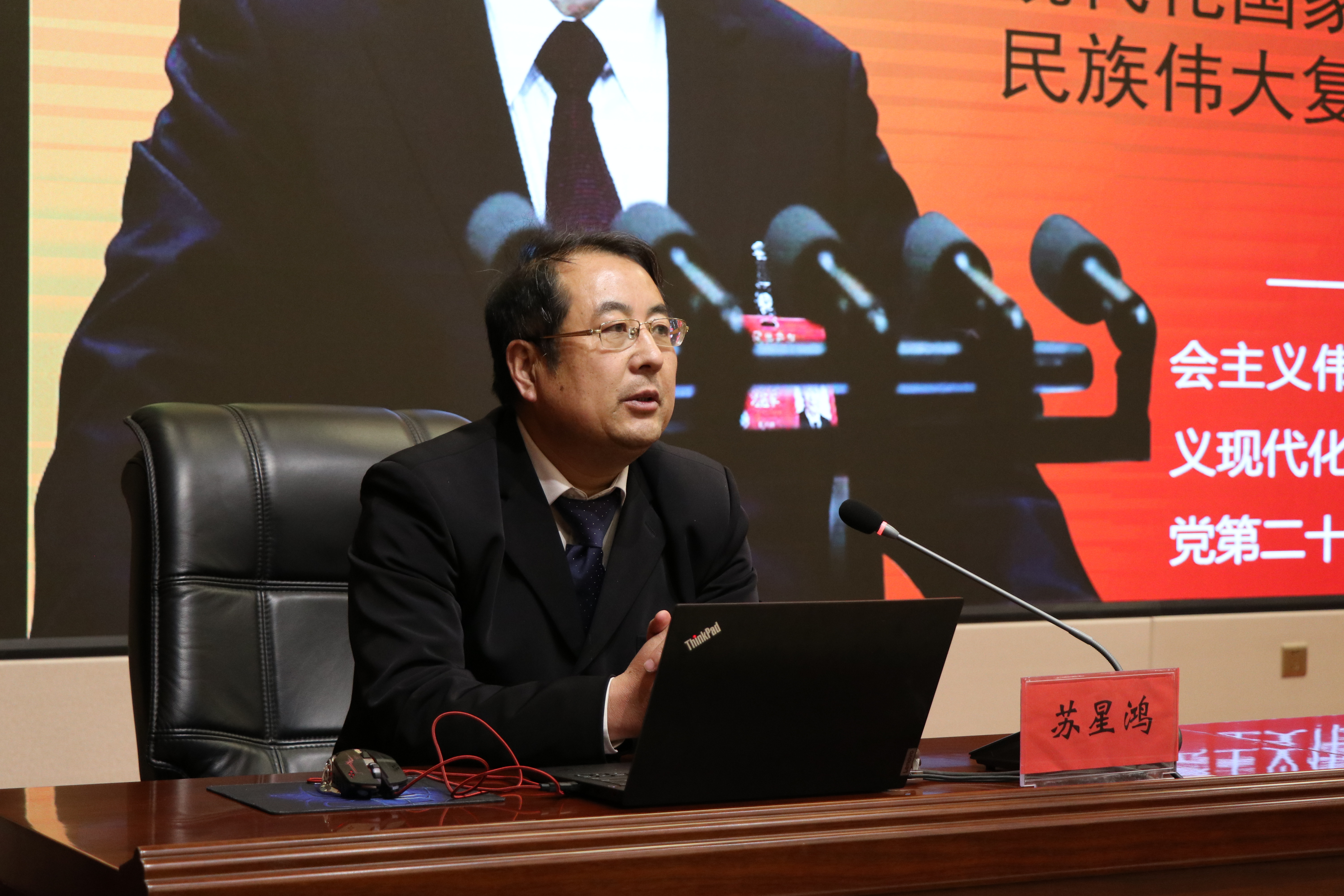 蘇星鴻教授以《深刻把握黨的二十大精神的核心要義》為題,從黨的二十大召開的歷史背景和重大意義、過去五年的工作和新時代十年的偉大變革、開辟馬克思主義中國化時代化新境界的科學(xué)內(nèi)涵、新時代新征程中國共產(chǎn)黨使命任務(wù)的豐富內(nèi)涵、以黨的自我革命推進偉大的社會革命的實踐意義和“五個必由之路”的戰(zhàn)略意義六個方面進行了深入淺出的闡述,對師生深刻理解黨的二十大精神具有很強的啟發(fā)意義。