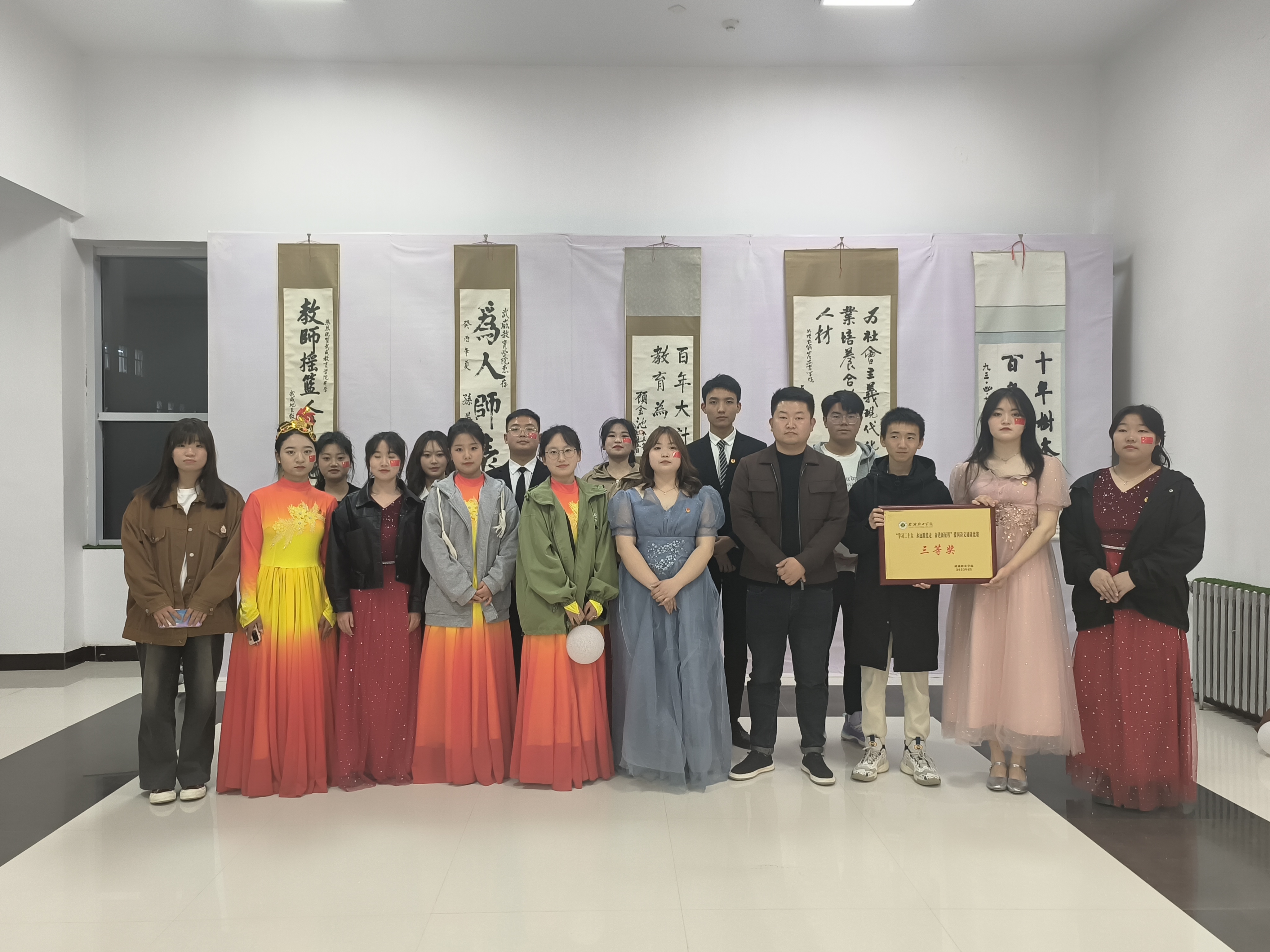 比賽結(jié)束后,藥學院的節(jié)目取到了優(yōu)秀的成績榮獲三等獎,這已經(jīng)不只是一場比賽更多的是讓我們深刻體會到革命先輩的艱辛,學習黨的二十大精神經(jīng)過洗禮與熏陶,我們要成長為充滿理想和活?的新青年!