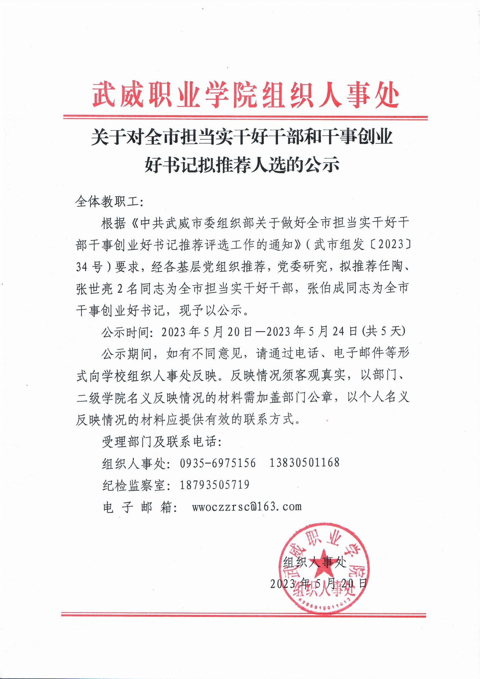 關于對校級擔當實干好干部、干事創(chuàng)業(yè)好書記、標準化先進黨支部擬表揚對象…