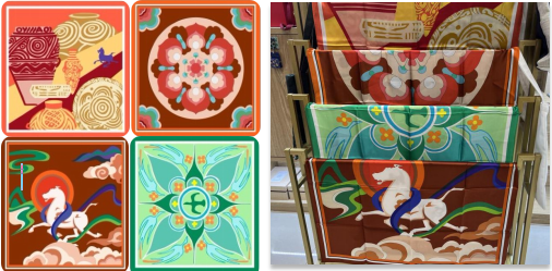 我校師生依托授權(quán)文物紋樣設(shè)計(jì)的“蓮花彩磚”“絢麗彩陶”“七彩天馬”“八鳥朝陽(yáng)”等文創(chuàng)作品,主題鮮明、形式多樣,充分展示了我校在文創(chuàng)產(chǎn)品開(kāi)發(fā)領(lǐng)域的專業(yè)能力。