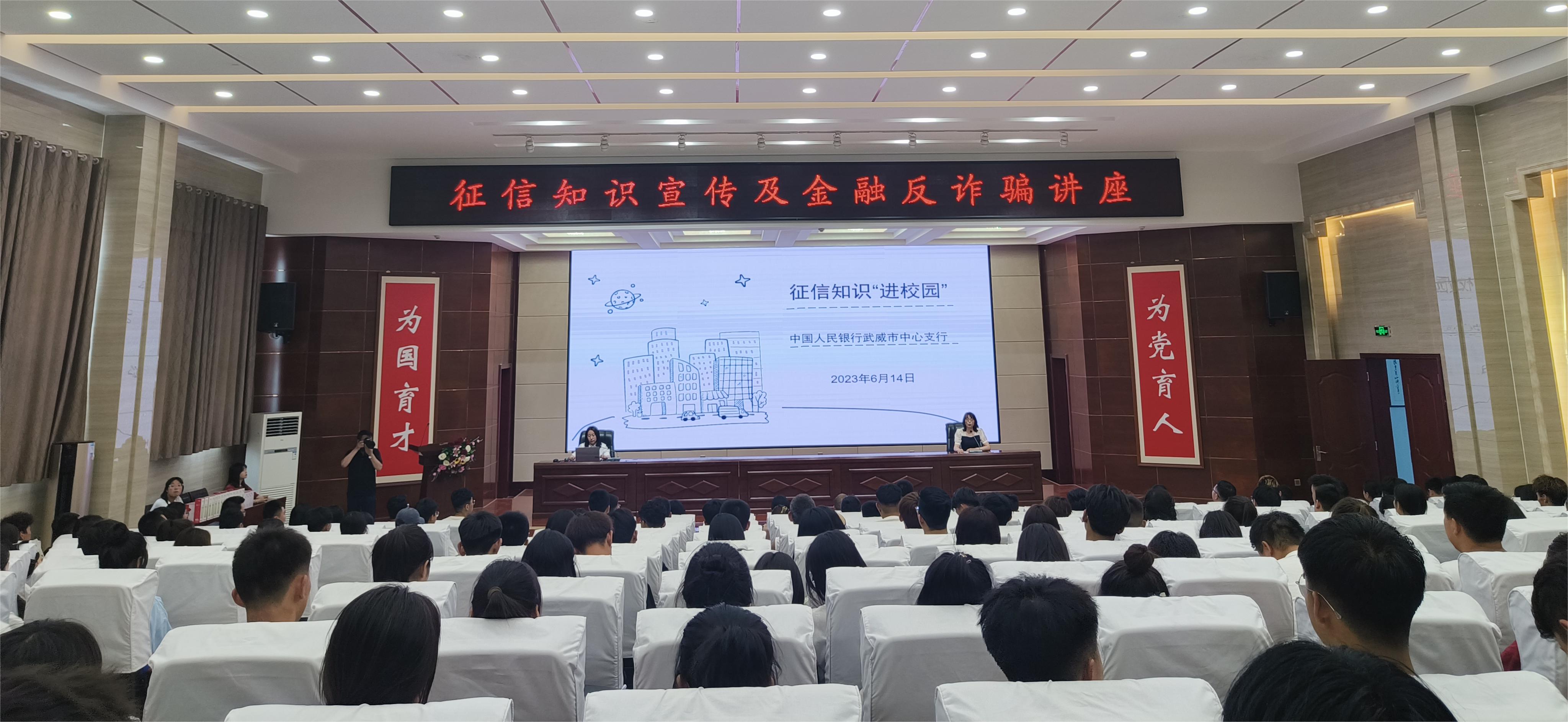 為普及金融、征信知識(shí),提高學(xué)生的誠(chéng)信意識(shí)和風(fēng)險(xiǎn)意識(shí),6月14日下午,在第16個(gè)全國(guó)“信用記錄關(guān)愛(ài)日”來(lái)臨之際,由我校和中國(guó)人民銀行武威市中心支行及10家商業(yè)銀行聯(lián)合主辦的“普及征信知識(shí),提高誠(chéng)信意識(shí)”為主題的征信知識(shí)進(jìn)校園宣傳活動(dòng)在學(xué)校大學(xué)生活動(dòng)中心前廣場(chǎng)和菁英廳舉行,學(xué)校500余名師生代表參加了本次活動(dòng)。