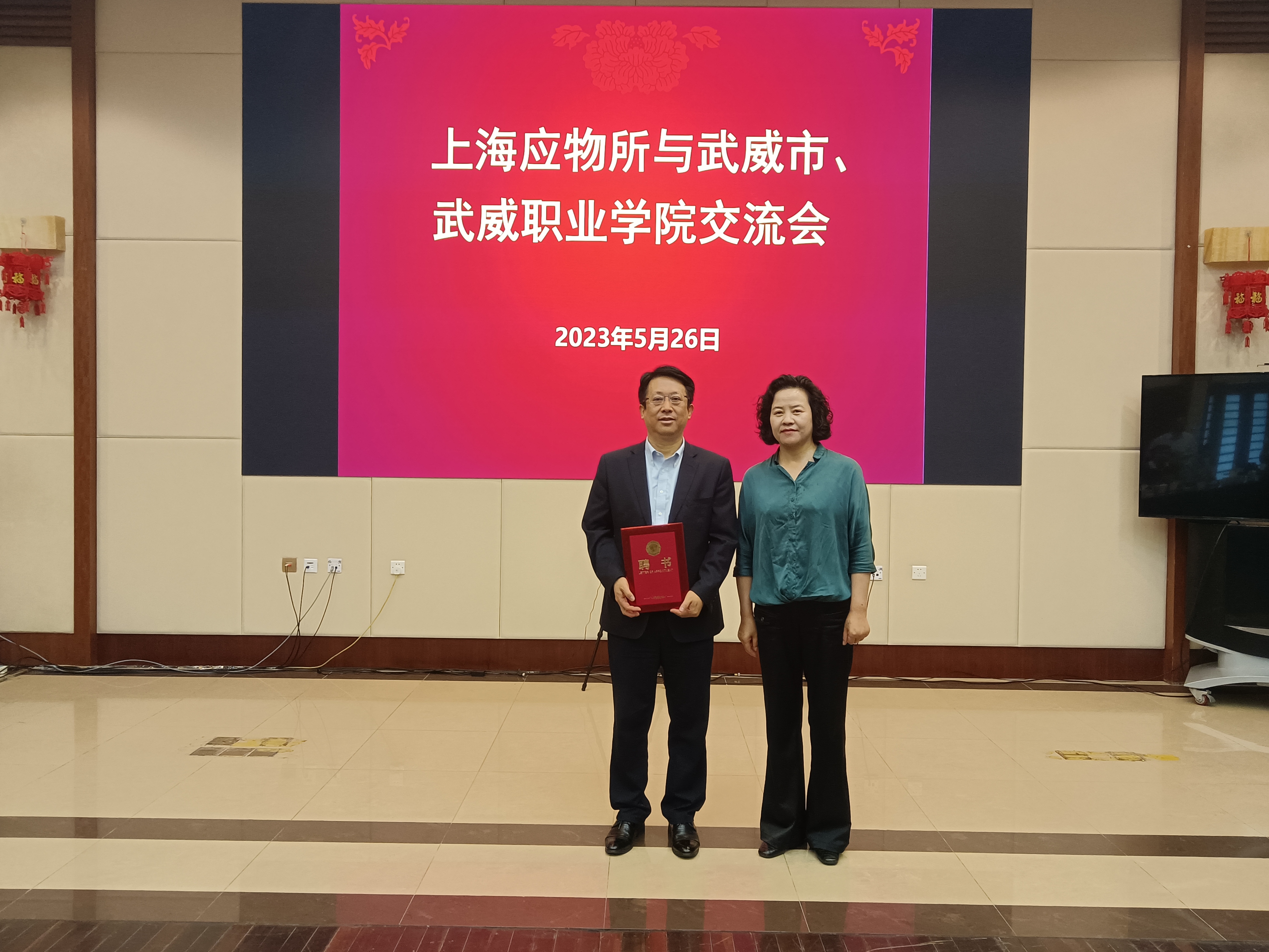 座談會上,柳生墜為武威職業(yè)學院特聘專家中國石油化工股份有限公司上海石油化工研究院楊為民院士頒發(fā)聘書。