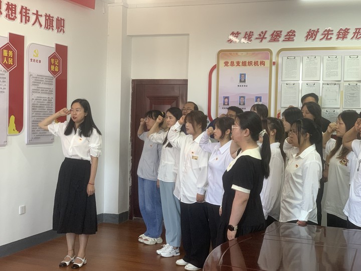教師黨員趙文杰帶領(lǐng)全體預(yù)備黨員進(jìn)行入黨宣誓,全體老黨員重溫入黨誓詞。黨員們集體面向黨旗,舉起右拳,跟隨領(lǐng)誓人宣誓,鄭重許下對黨的承諾,表達(dá)著自己為共產(chǎn)主義事業(yè)奮斗終身的決心。每位黨員都接受了一次深刻的思想洗禮,更加明確了新時代黨員的責(zé)任擔(dān)當(dāng)。