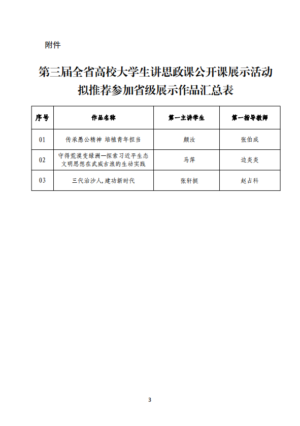 關(guān)于武威職業(yè)學(xué)院第三屆全省高校大學(xué)生講思政課公開課展示活動(dòng)評(píng)選結(jié)果的公示