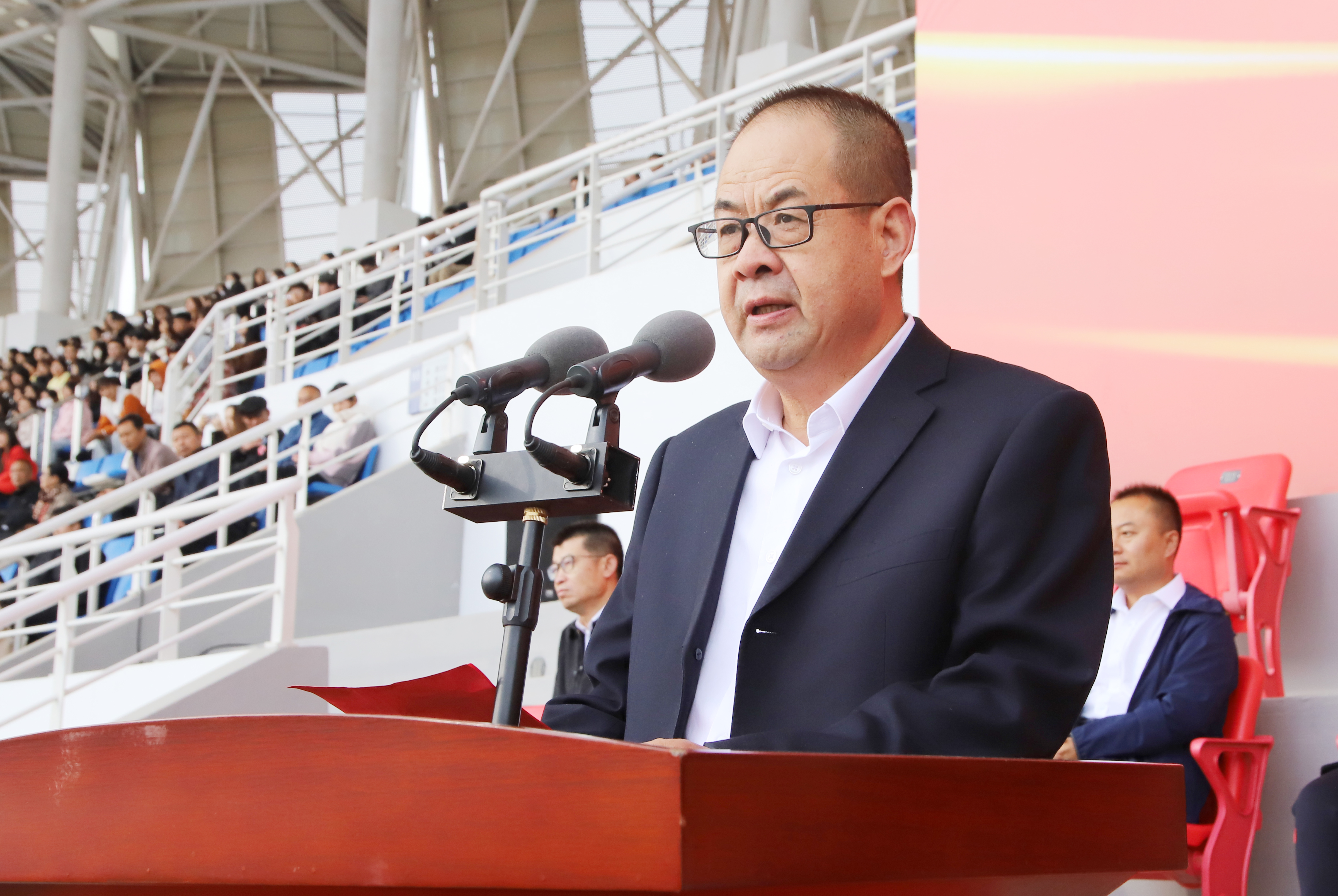 翟存祥致開幕辭,對運動會的召開表示熱烈的祝賀,向全體運動員、裁判員、教練員致以親切的問候,向精心籌備賽會的師生表示衷心的感謝。翟存祥表示,體育是國家教育事業(yè)的重要組成部分,作為新時代青年,更應(yīng)該具備合格的素質(zhì)、強健的體魄。他希望,全體師生要發(fā)揚“更高、更快、更強、更團結(jié)”的奧林匹克精神,堅持體育鍛煉,練就強健體魄,讓體育運動成為一種習慣,在運動中感受快樂,收獲健康,享受幸福生活。他希望通過運動會的舉辦,在全校形成熱愛體育運動、弘揚體育精神的濃厚氛圍,以飽滿的熱情、頑強拼搏的精神和務(wù)實的作風,奮力譜寫學校高質(zhì)量發(fā)展的嶄新篇章。