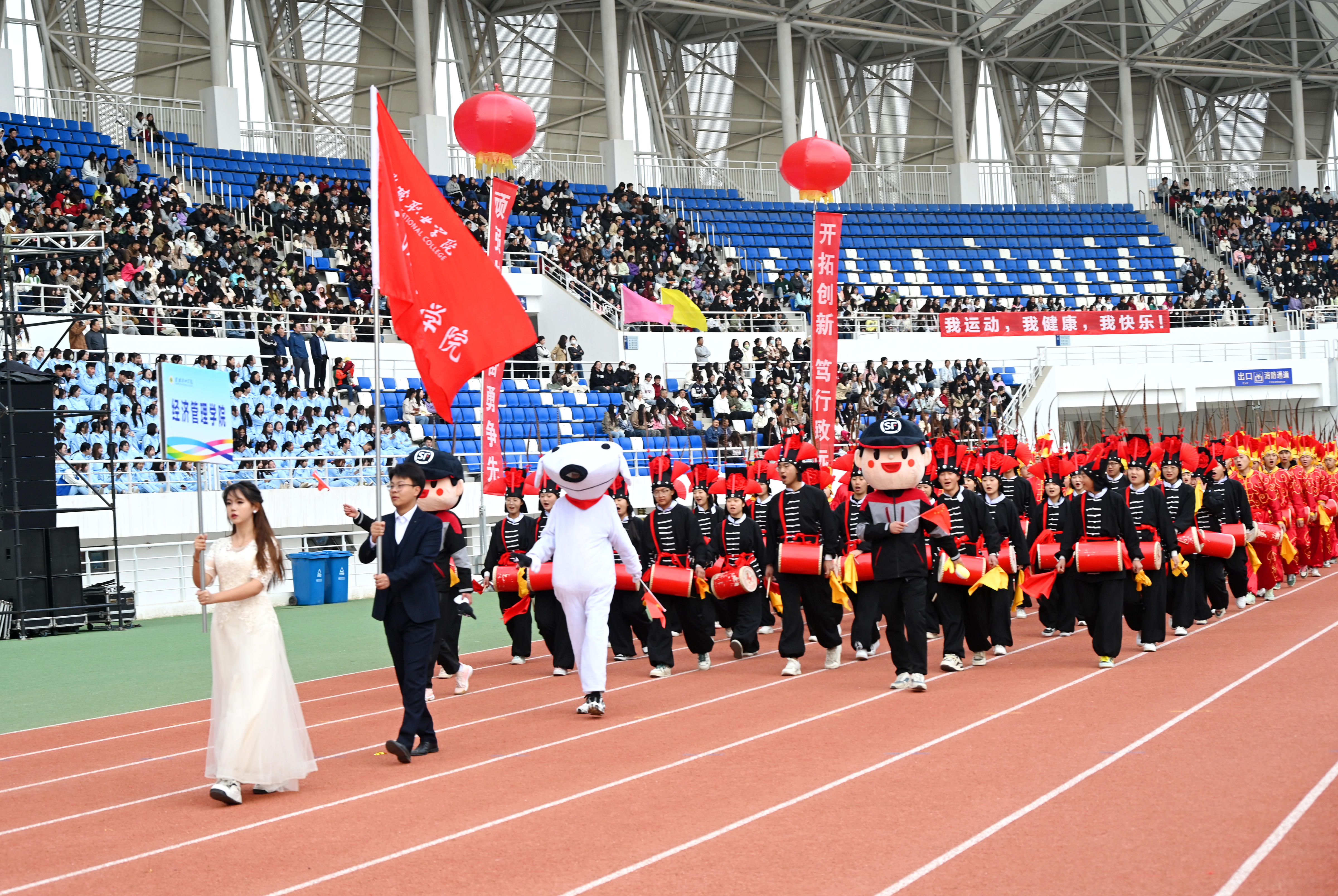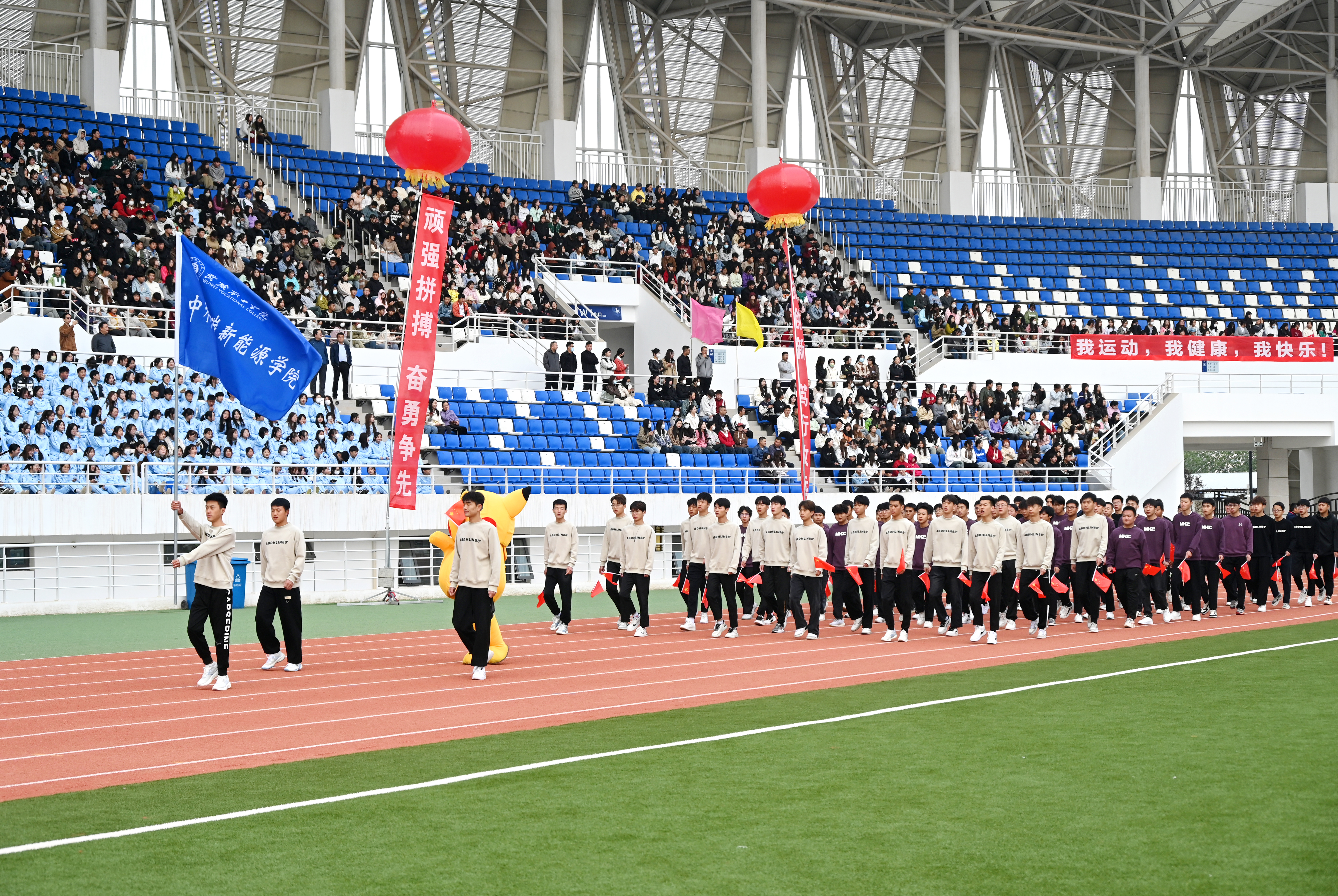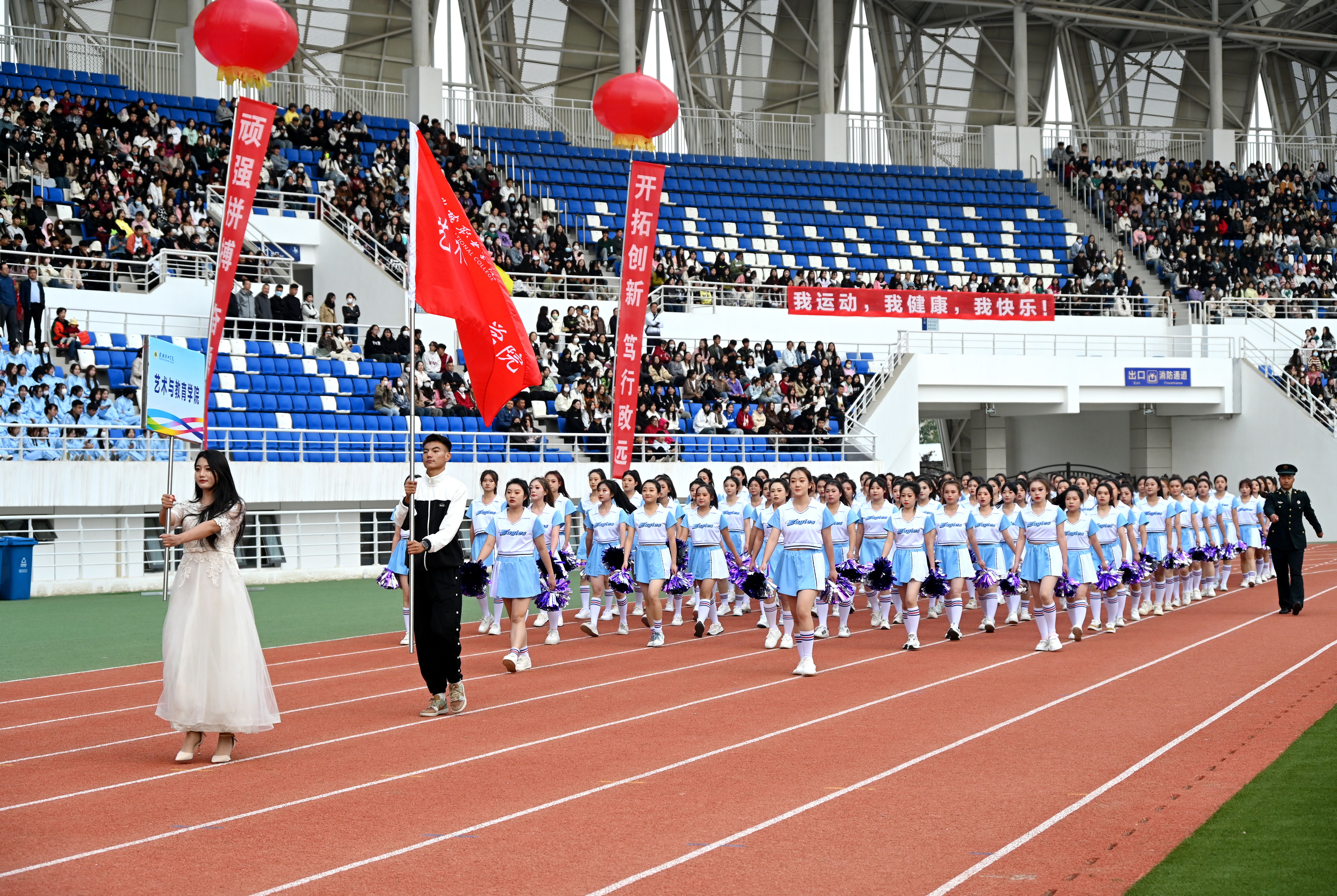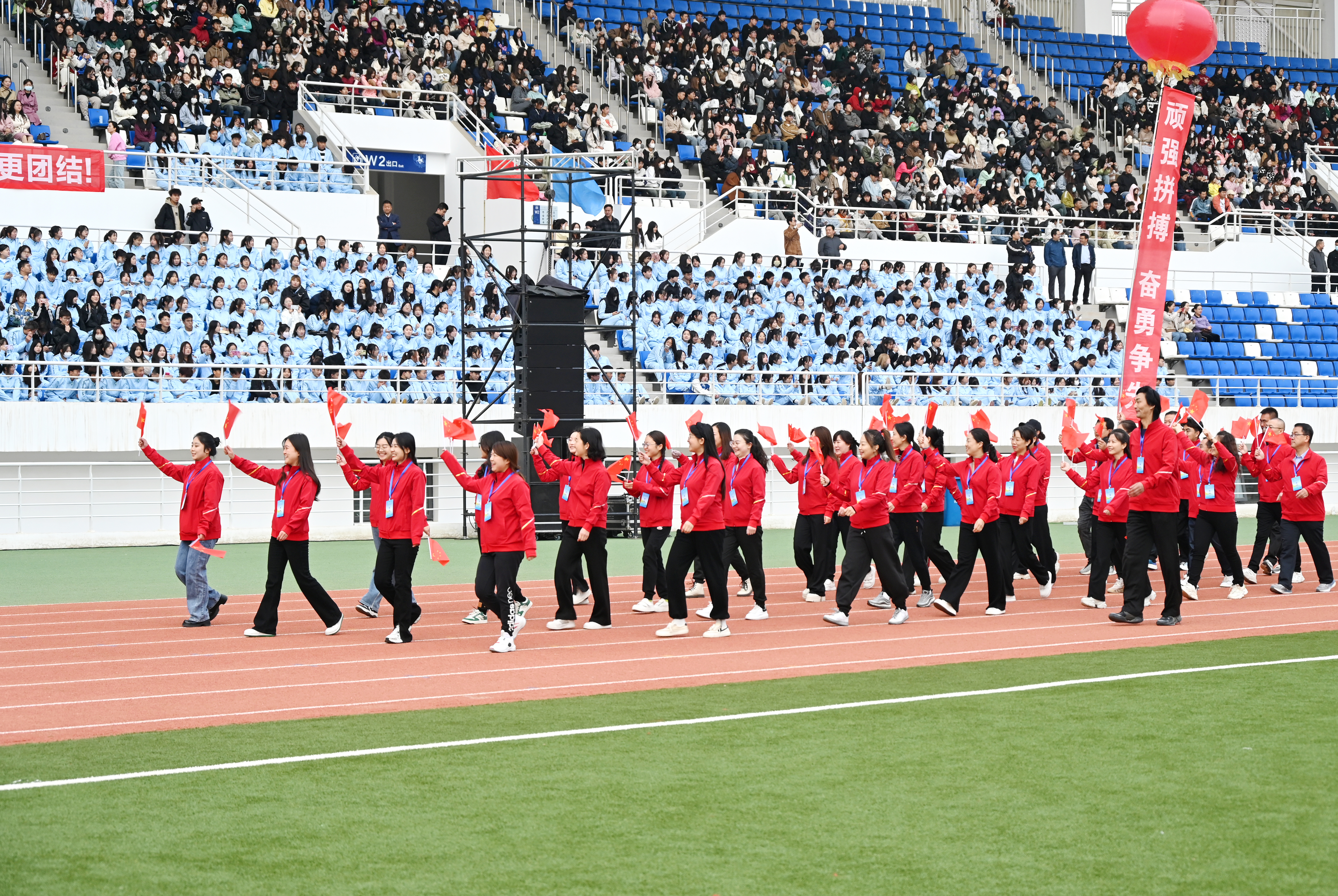 伴隨著雄壯激越的運動員進行曲,國旗護衛(wèi)隊、彩旗隊、裁判員隊伍、各二級學院方陣依次入場,隊列步伐整齊有力,口號堅定嘹亮,充分展示了師生良好的精神風貌。