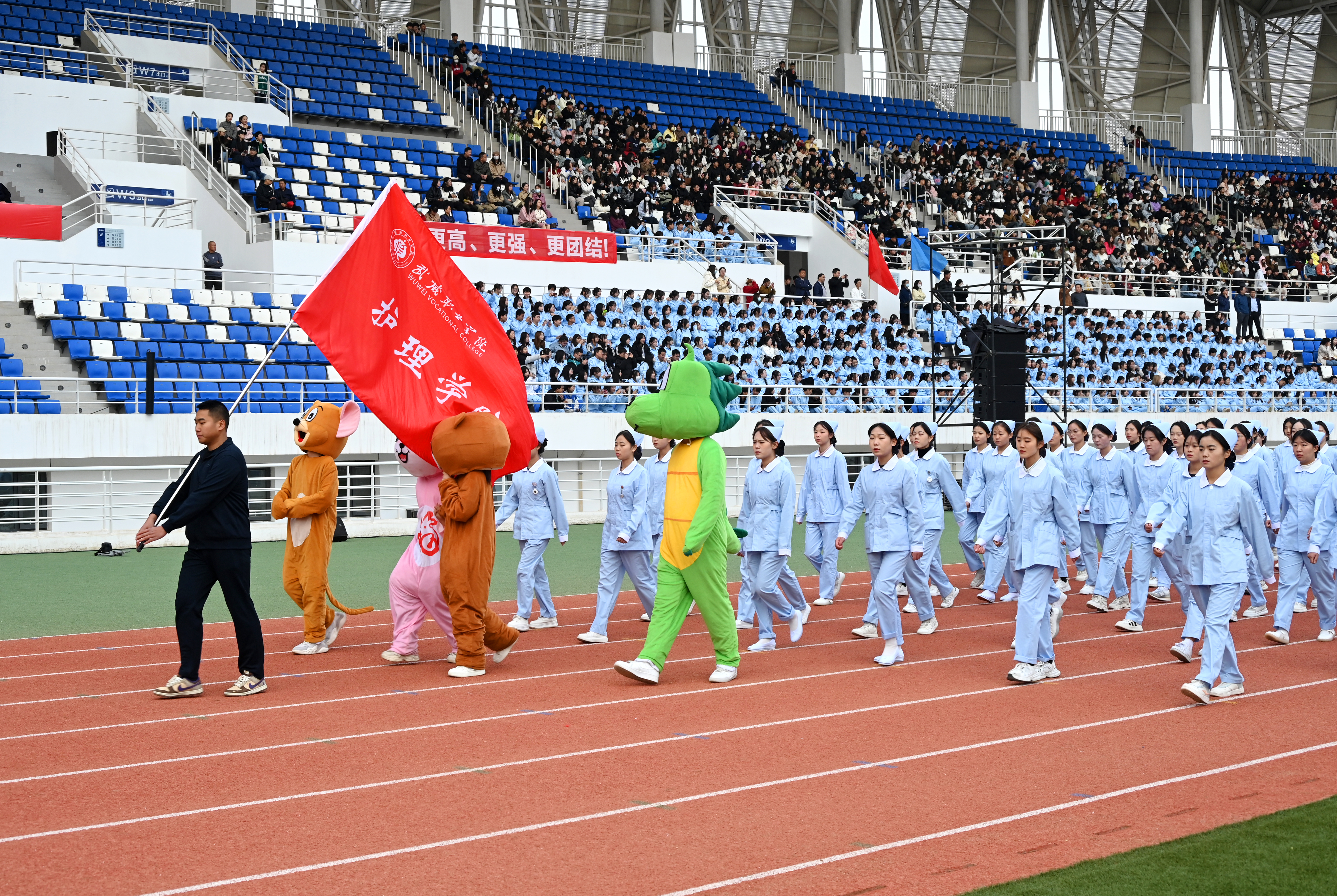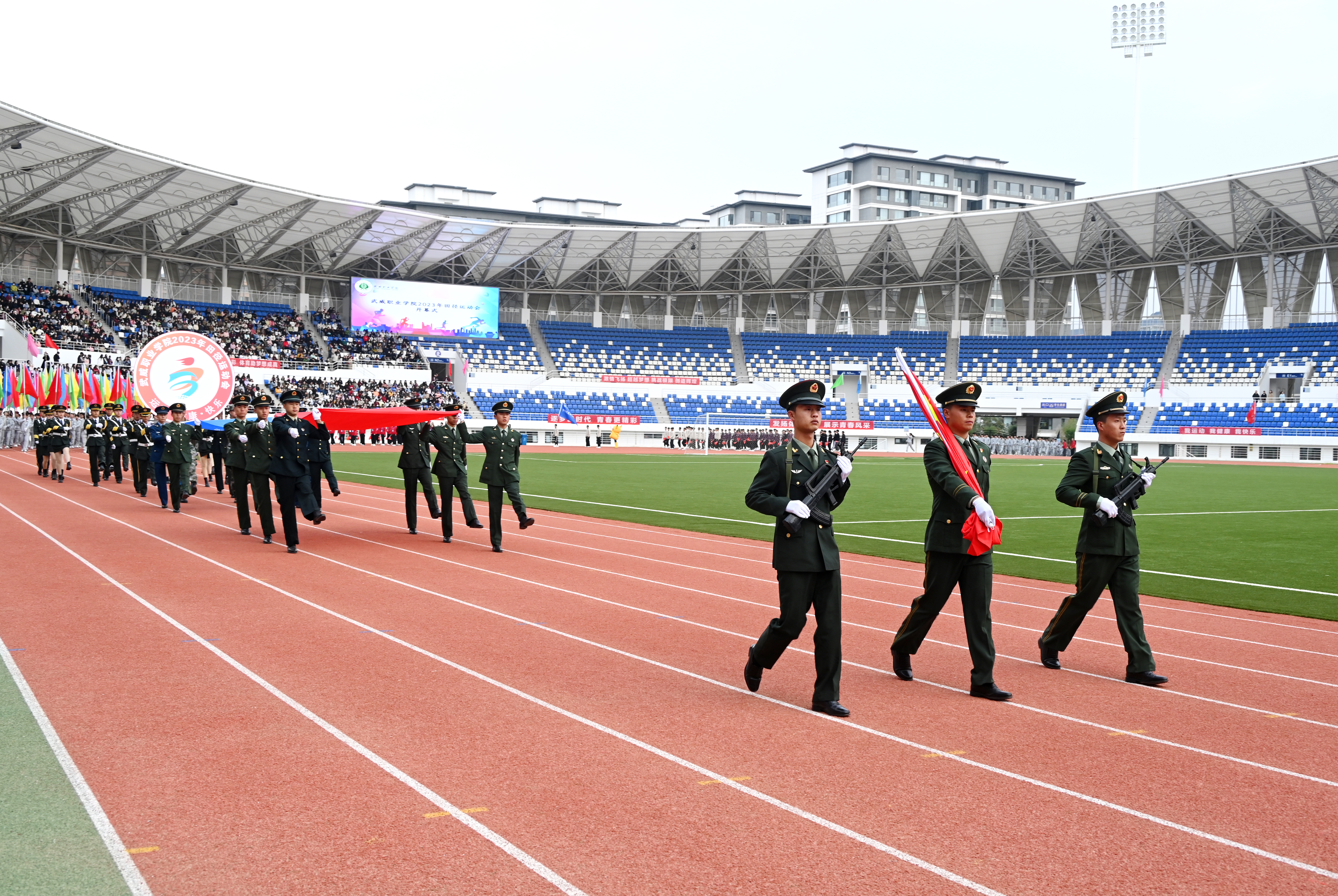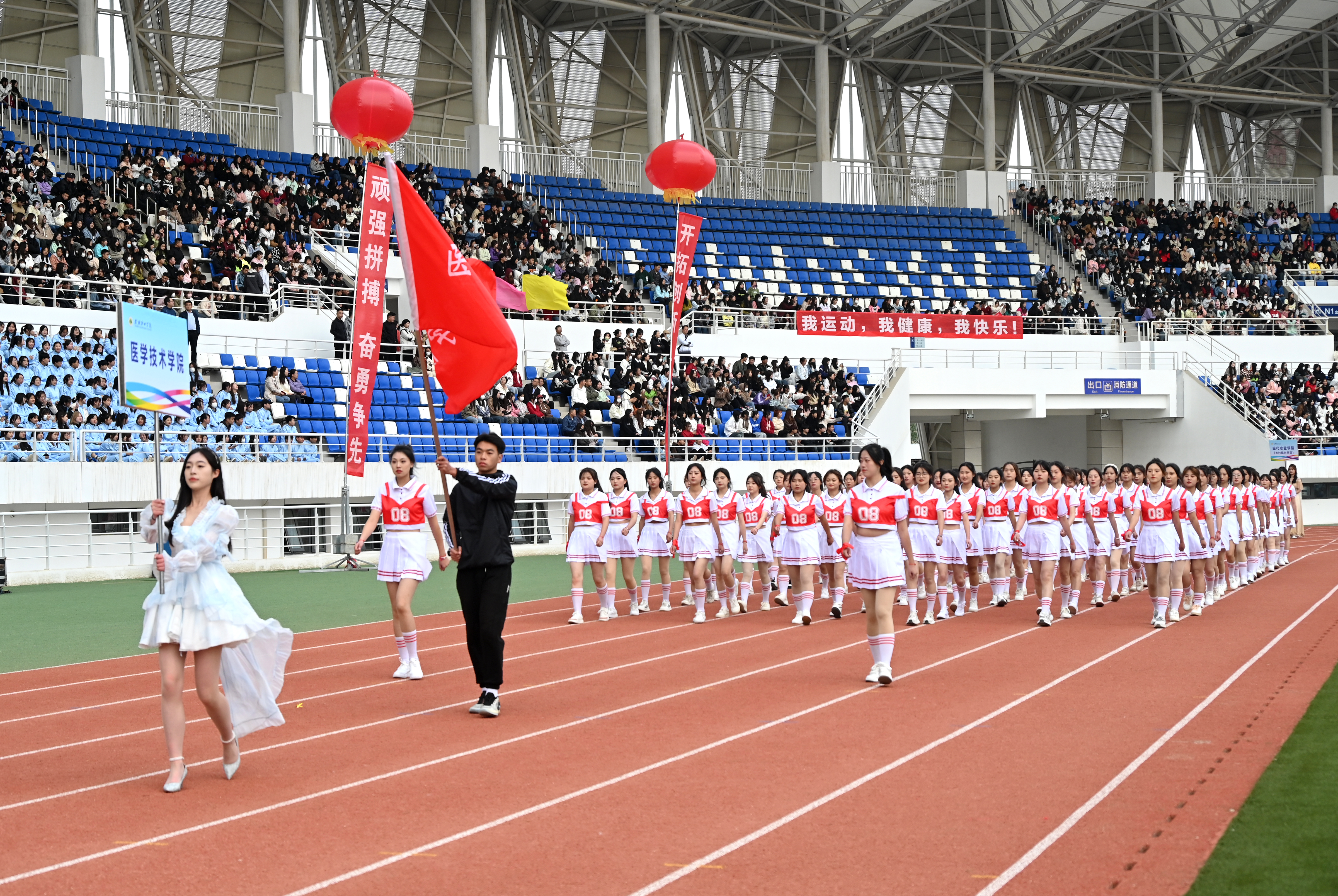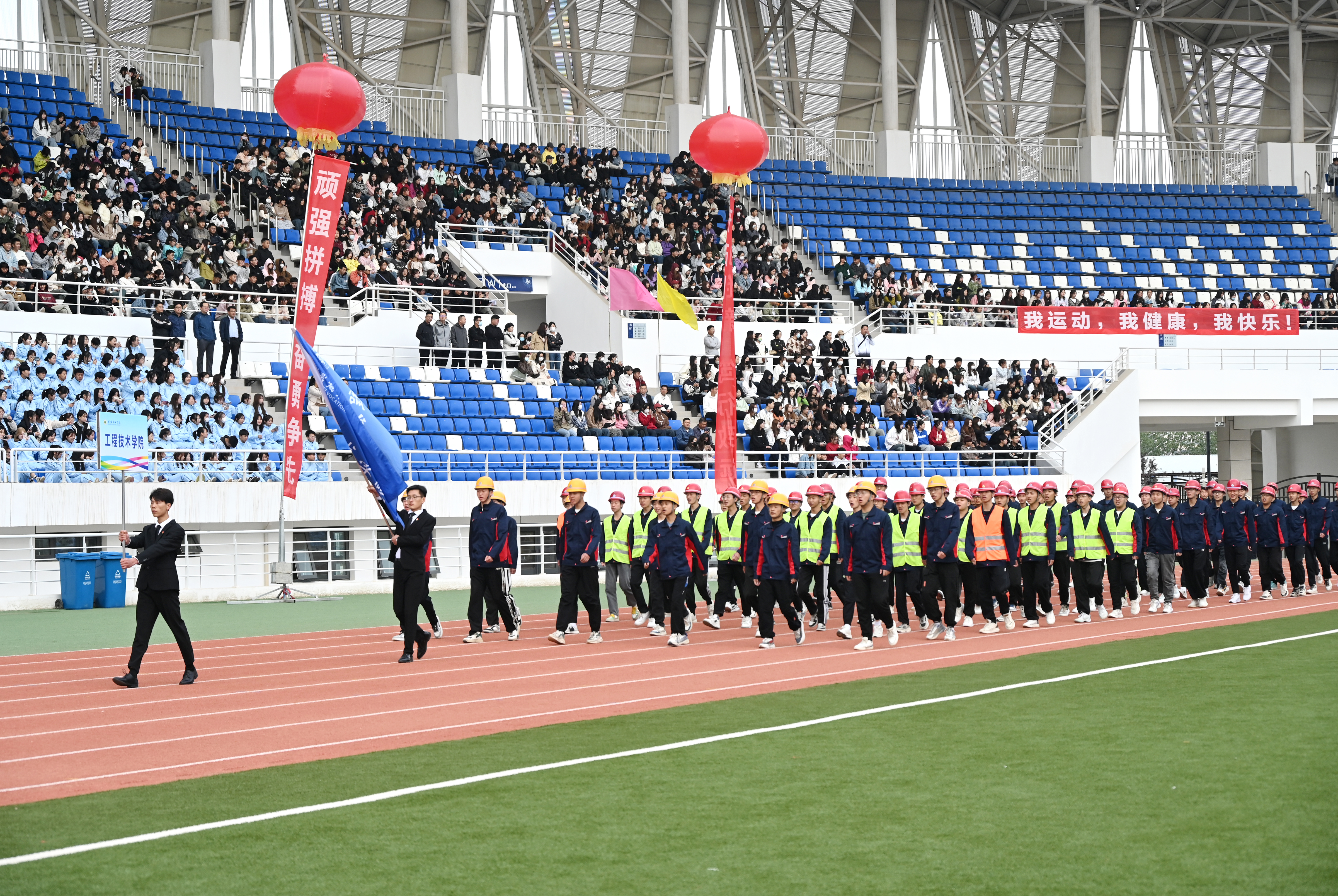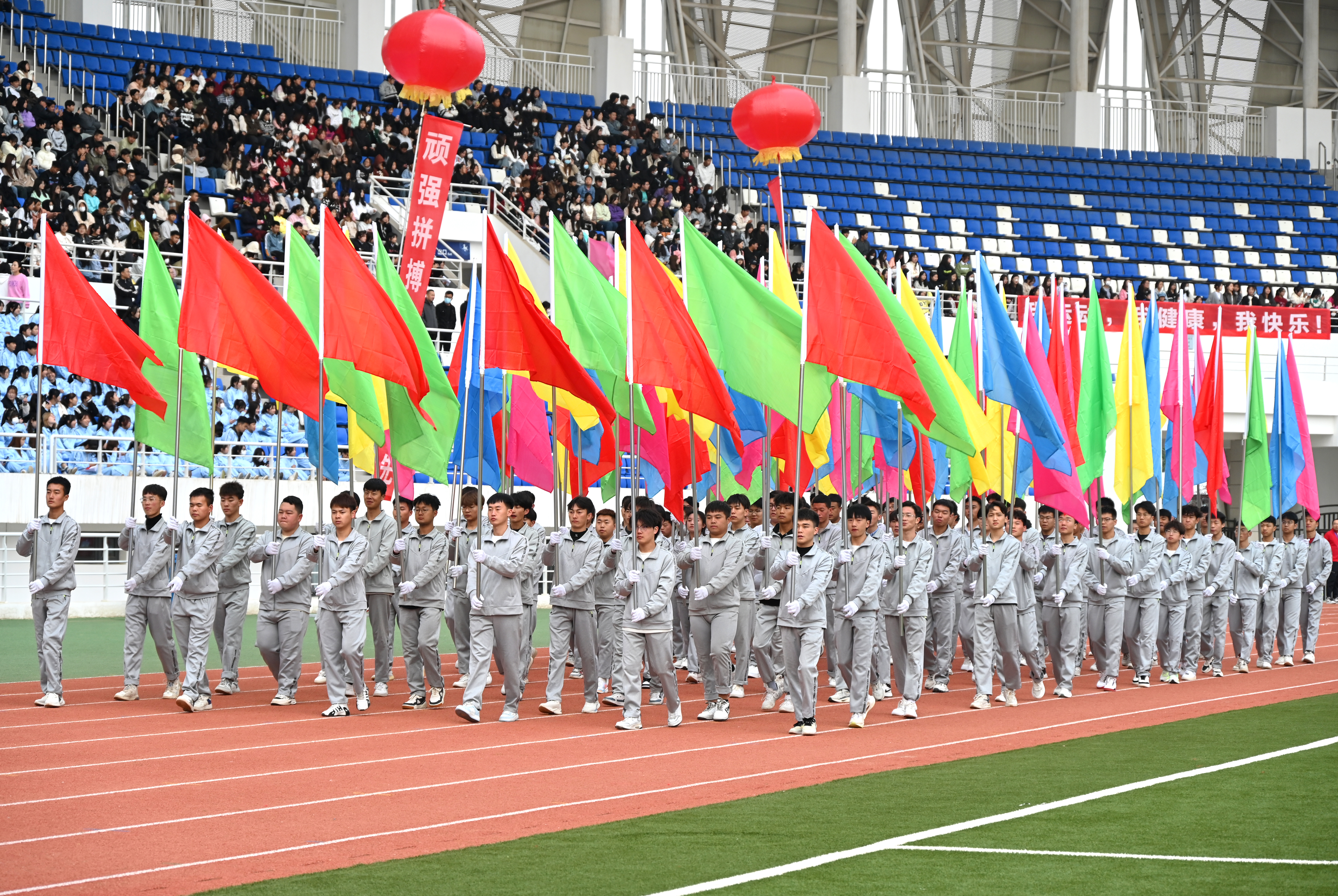 伴隨著雄壯激越的運動員進行曲,國旗護衛(wèi)隊、彩旗隊、裁判員隊伍、各二級學院方陣依次入場,隊列步伐整齊有力,口號堅定嘹亮,充分展示了師生良好的精神風貌。