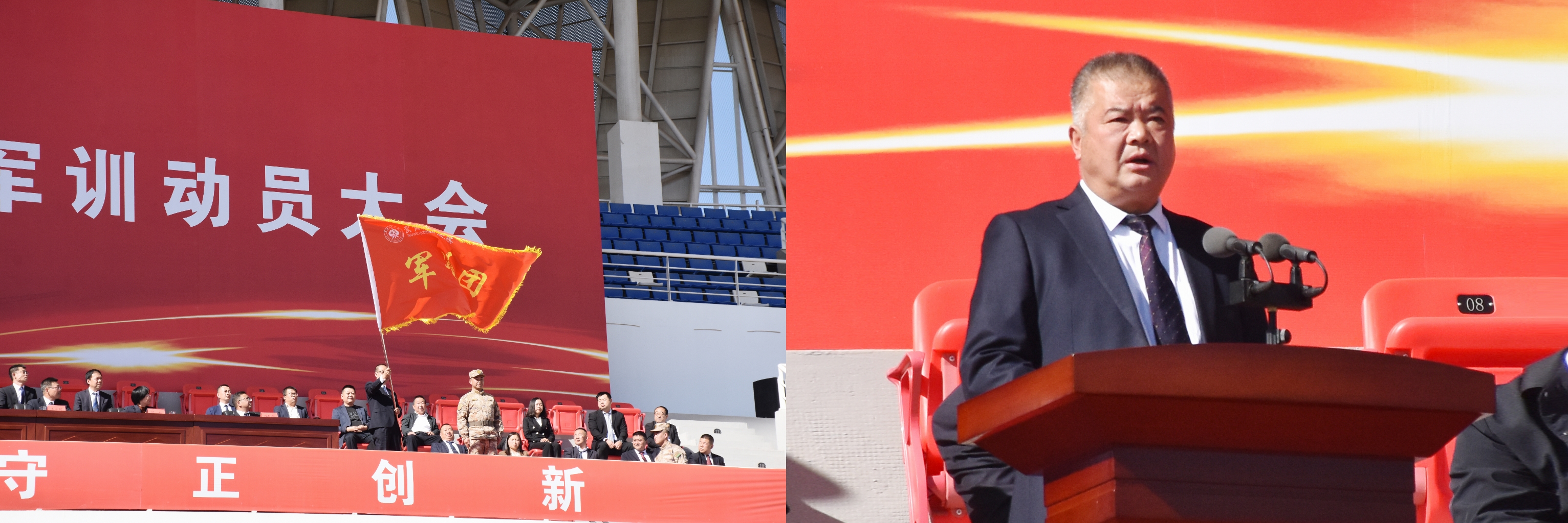 軍訓(xùn)動(dòng)員階段,黨委委員,副校長(zhǎng)王守云安排了2023級(jí)新生軍訓(xùn)工作,軍訓(xùn)教官李昌泰作發(fā)言,黨委副書記翟存祥向軍訓(xùn)團(tuán)授旗。