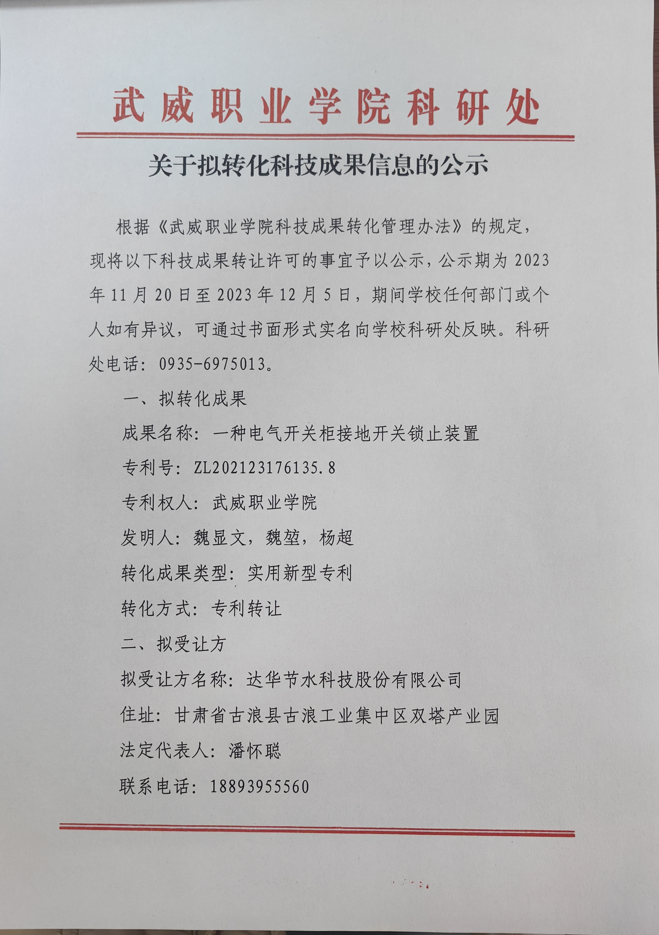 關(guān)于擬轉(zhuǎn)化科技成果信息的公示