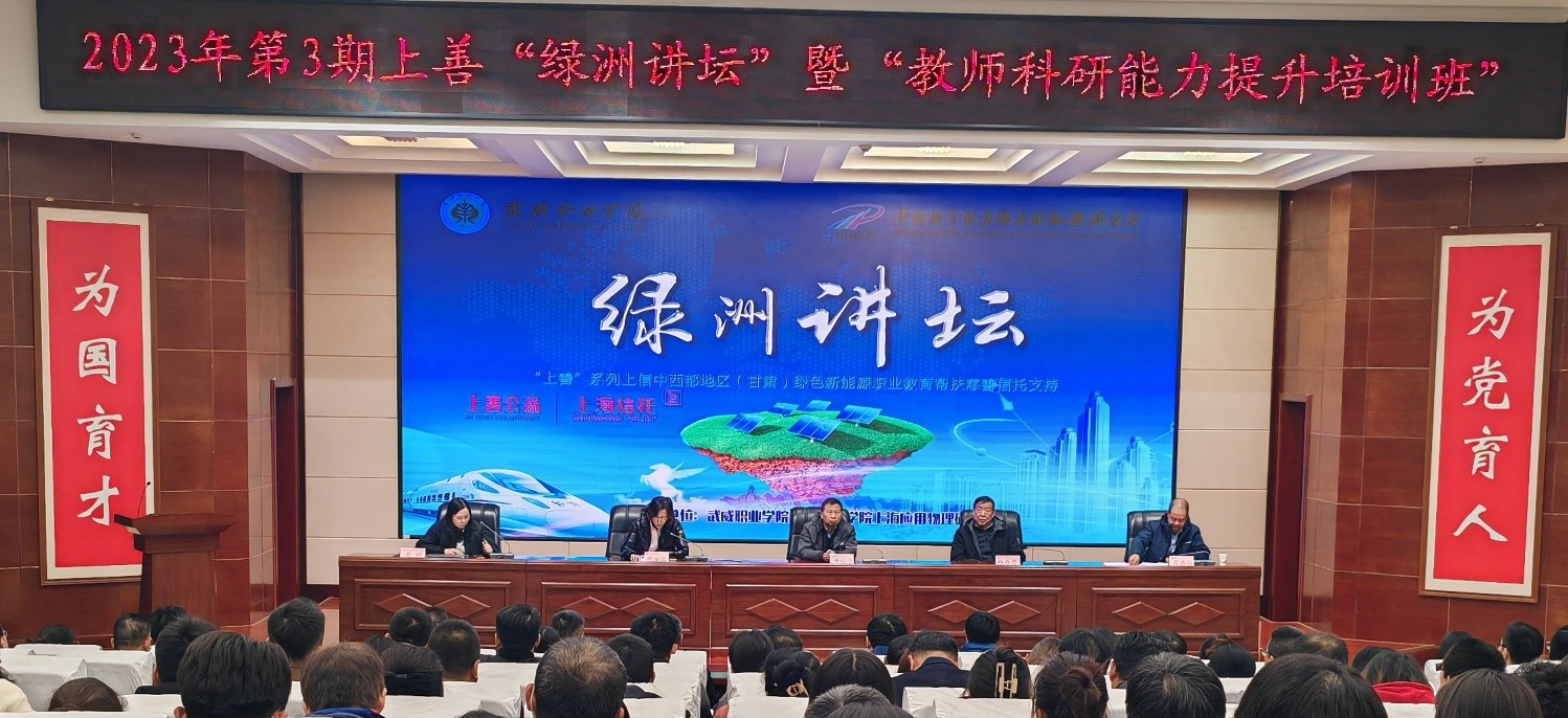 為進(jìn)一步深入學(xué)習(xí)貫徹黨的二十大精神,落實(shí)中共中央辦公廳、國(guó)務(wù)院辦公廳印發(fā)的《關(guān)于深化現(xiàn)代職業(yè)教育體系建設(shè)改革的意見》精神,切實(shí)開展“科教融匯、產(chǎn)教融合”,2023年11月10日,武威職業(yè)學(xué)院2023年第3期上善“綠洲講壇”學(xué)術(shù)報(bào)告會(huì)暨“教師科研能力提升培訓(xùn)班”在學(xué)校菁英廳開講。原中科院上海應(yīng)用物理研究所黨委書記唐裕華;上海應(yīng)物所高級(jí)教育顧問,中科低碳新能源技術(shù)學(xué)院院長(zhǎng)楊存忠教授;“上善”慈善信托公司總經(jīng)理蔡汝溶;核工業(yè)第八研究所王伊馨博士、王夢(mèng)千博士、何炳余博士、王后全博士;上海應(yīng)物所副研究員,中科低碳新能源技術(shù)學(xué)院院長(zhǎng)助理金嬋博士;全體在家校領(lǐng)導(dǎo)出席此次報(bào)告會(huì),教師代表共200人參會(huì),此次報(bào)告會(huì)由武威職業(yè)學(xué)院黨委副書記翟存祥教授主持。
