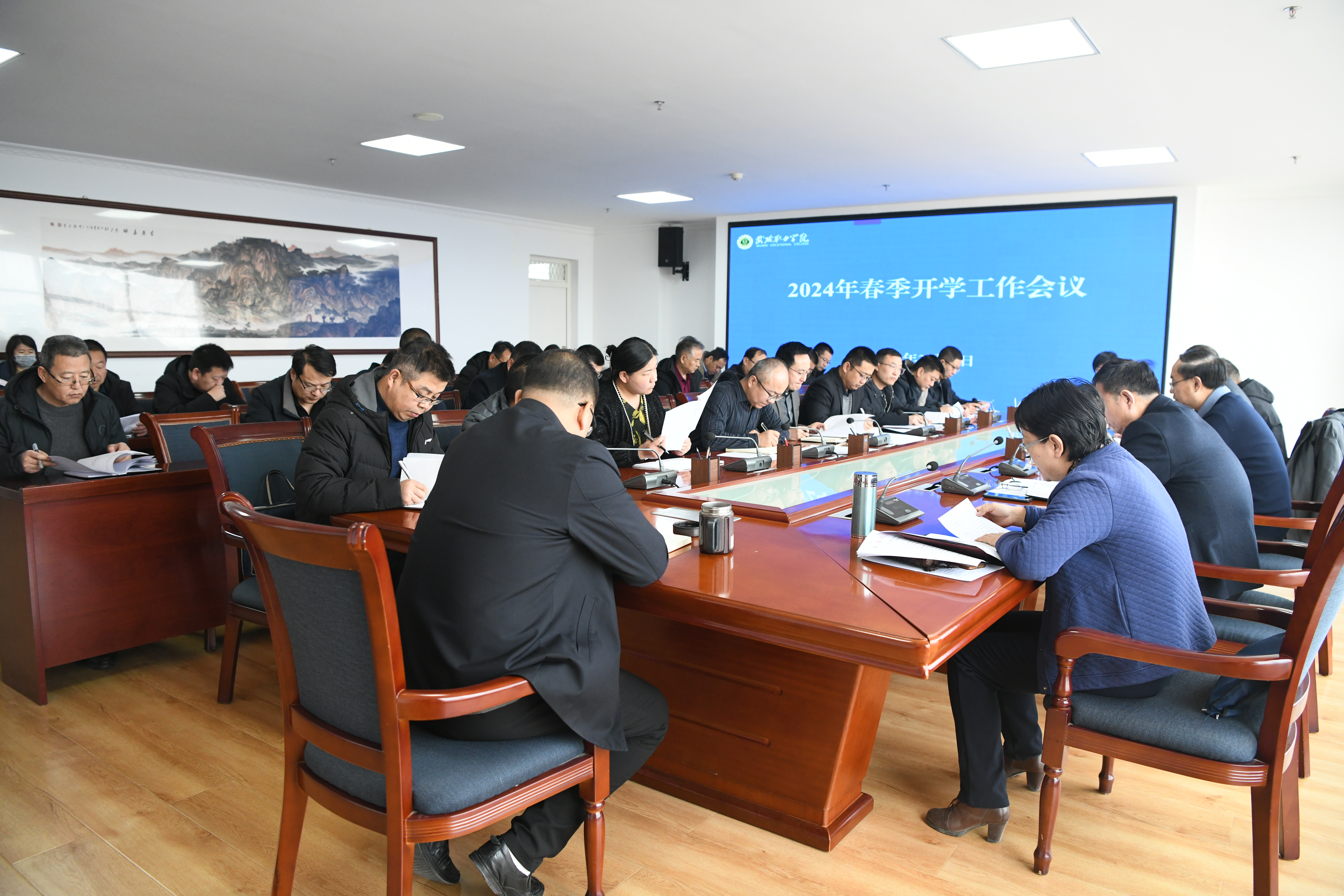 為確保新學期開學平穩(wěn)順利,科學謀劃2024年學校各項工作,2月23日,學校召開2024年春季學期開學工作會議。學校校領(lǐng)導班子成員、各部門和二級學院負責人參加會議,會議由黨委書記王宏主持。