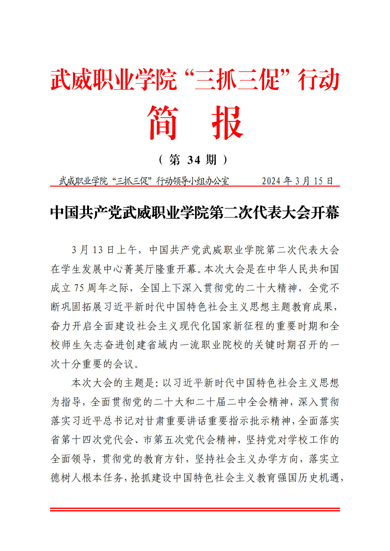 簡報(bào)第34期:中國共產(chǎn)黨武威職業(yè)學(xué)院第二次代表…