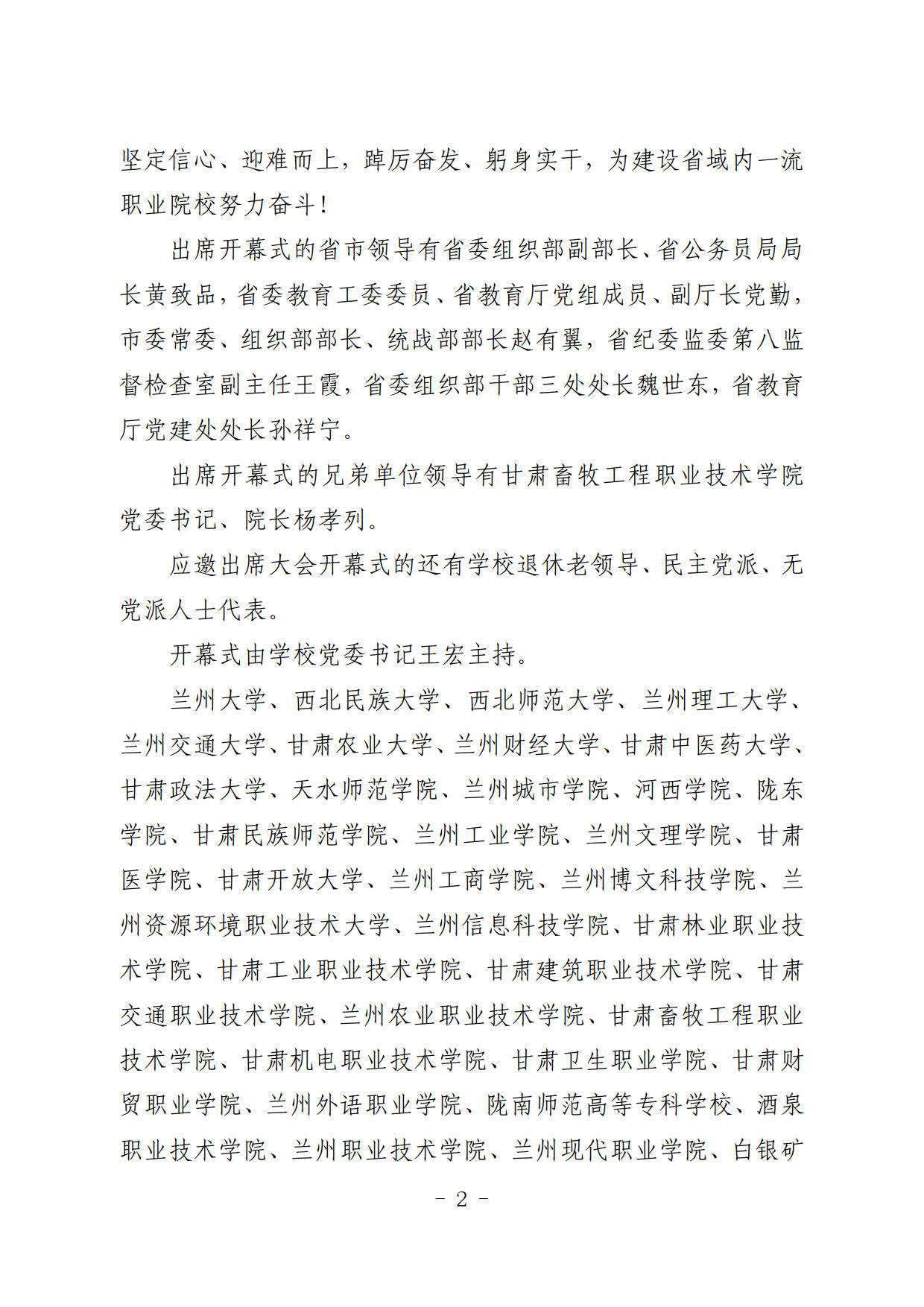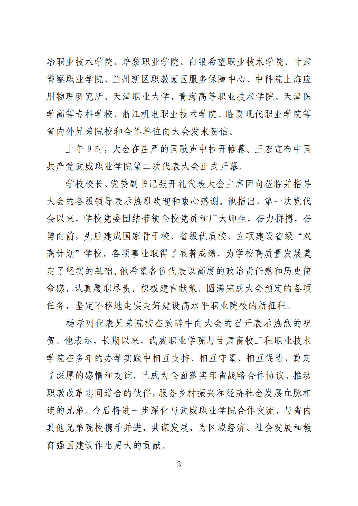 簡報(bào)第34期:中國共產(chǎn)黨武威職業(yè)學(xué)院第二次代表大會(huì)開幕