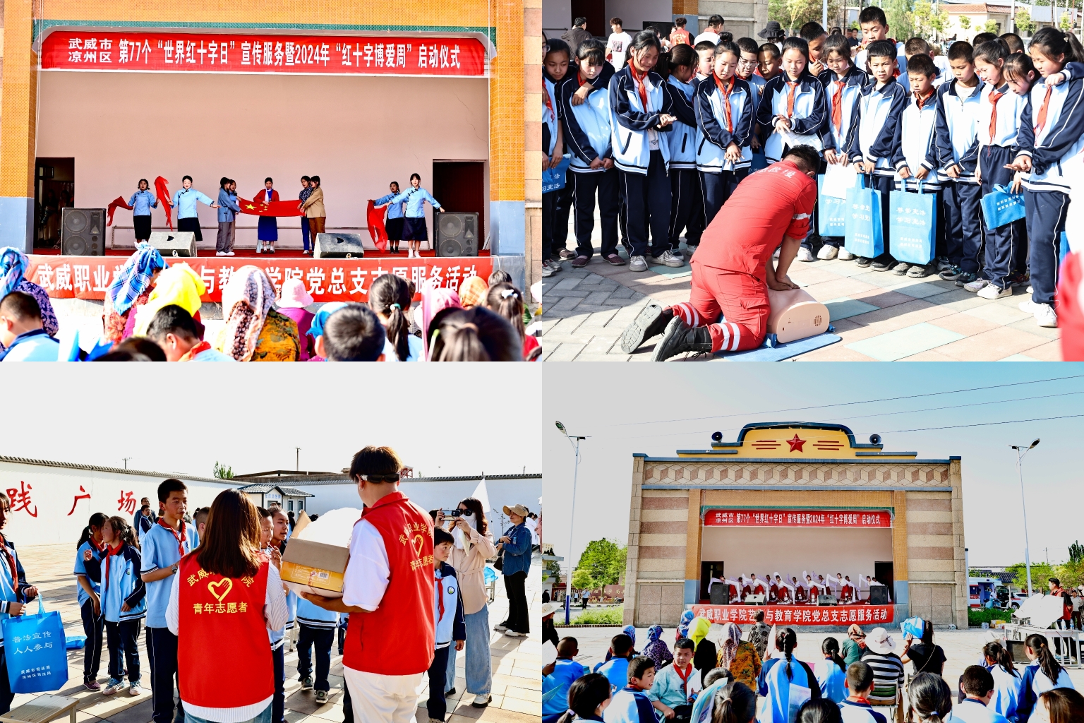 為紀(jì)念第77個(gè)“世界紅十字日”,進(jìn)一步弘揚(yáng)“人道、博愛(ài)、奉獻(xiàn)”的紅十字精神,5月8日下午,武威職業(yè)學(xué)院藝術(shù)與教育學(xué)院50名志愿者赴涼州區(qū)清水鎮(zhèn)張清村開(kāi)展“世界紅十字日”宣傳服務(wù)活動(dòng)。