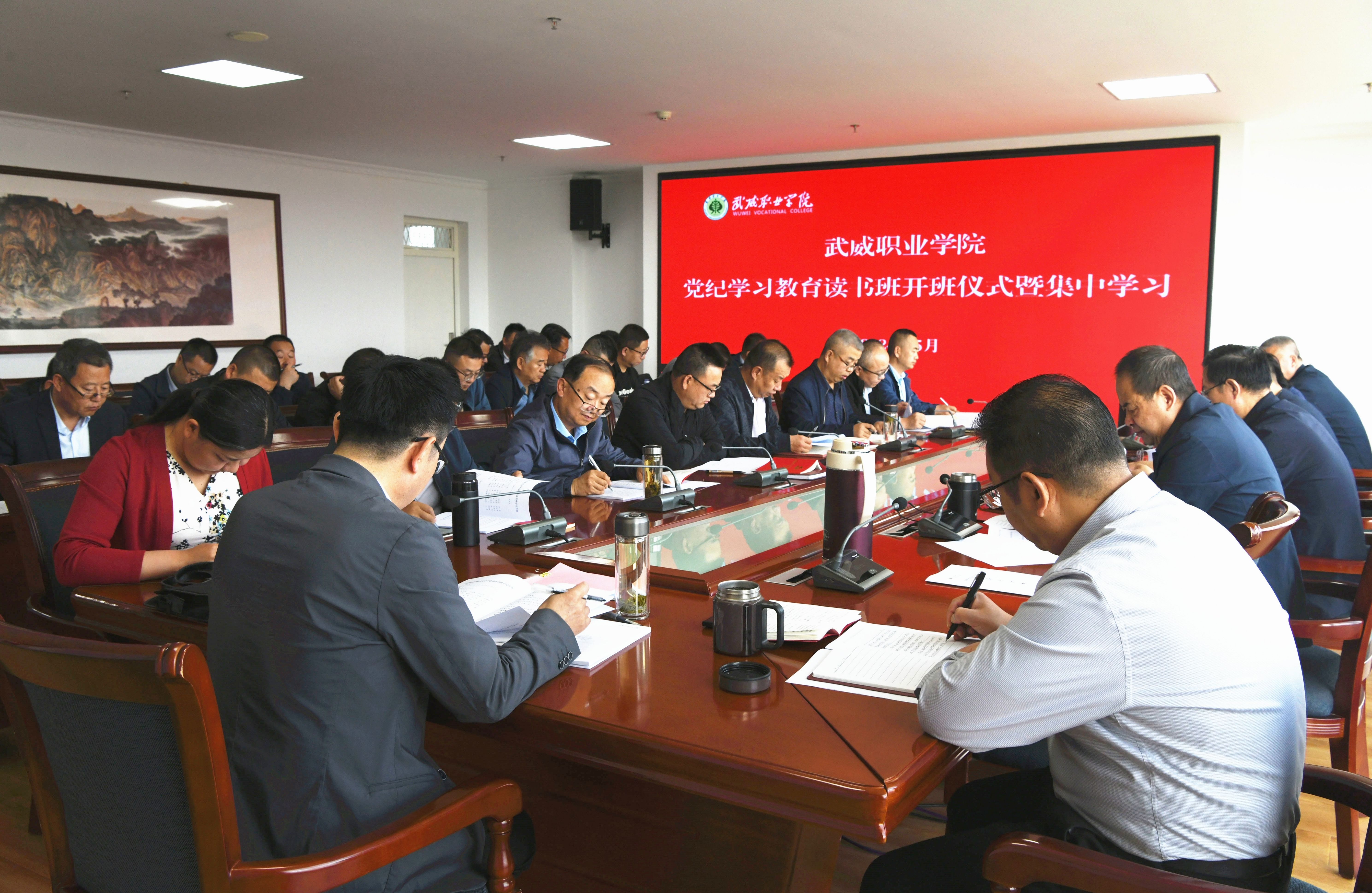 5月7日上午,武威職業(yè)學(xué)院黨紀(jì)學(xué)習(xí)教育讀書(shū)班開(kāi)班并進(jìn)行集體學(xué)習(xí)。學(xué)校校長(zhǎng)、黨委副書(shū)記張開(kāi)禮作開(kāi)班動(dòng)員講話。黨委班子成員、副處級(jí)黨員干部,各黨總支、直屬黨支部書(shū)記,各部門(mén)、二級(jí)學(xué)院主要負(fù)責(zé)人等37人參加學(xué)習(xí)。