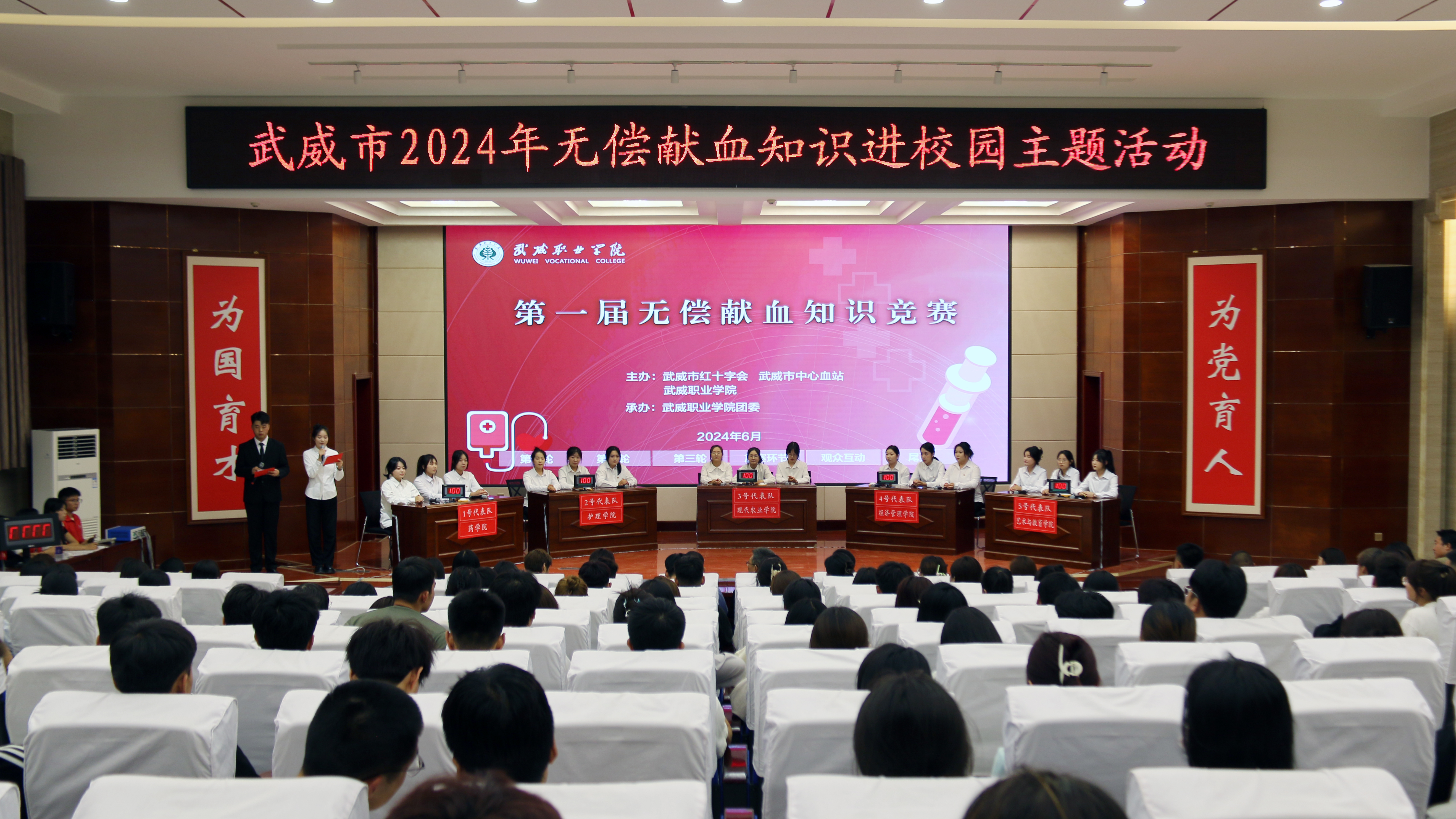 血液是生命的源泉,愛心是生命的曙光。6月17日,由武威職業(yè)學(xué)院、武威市紅十字會(huì)、武威市中心血站共同主辦的無償獻(xiàn)血知識競賽在菁英廳舉辦。