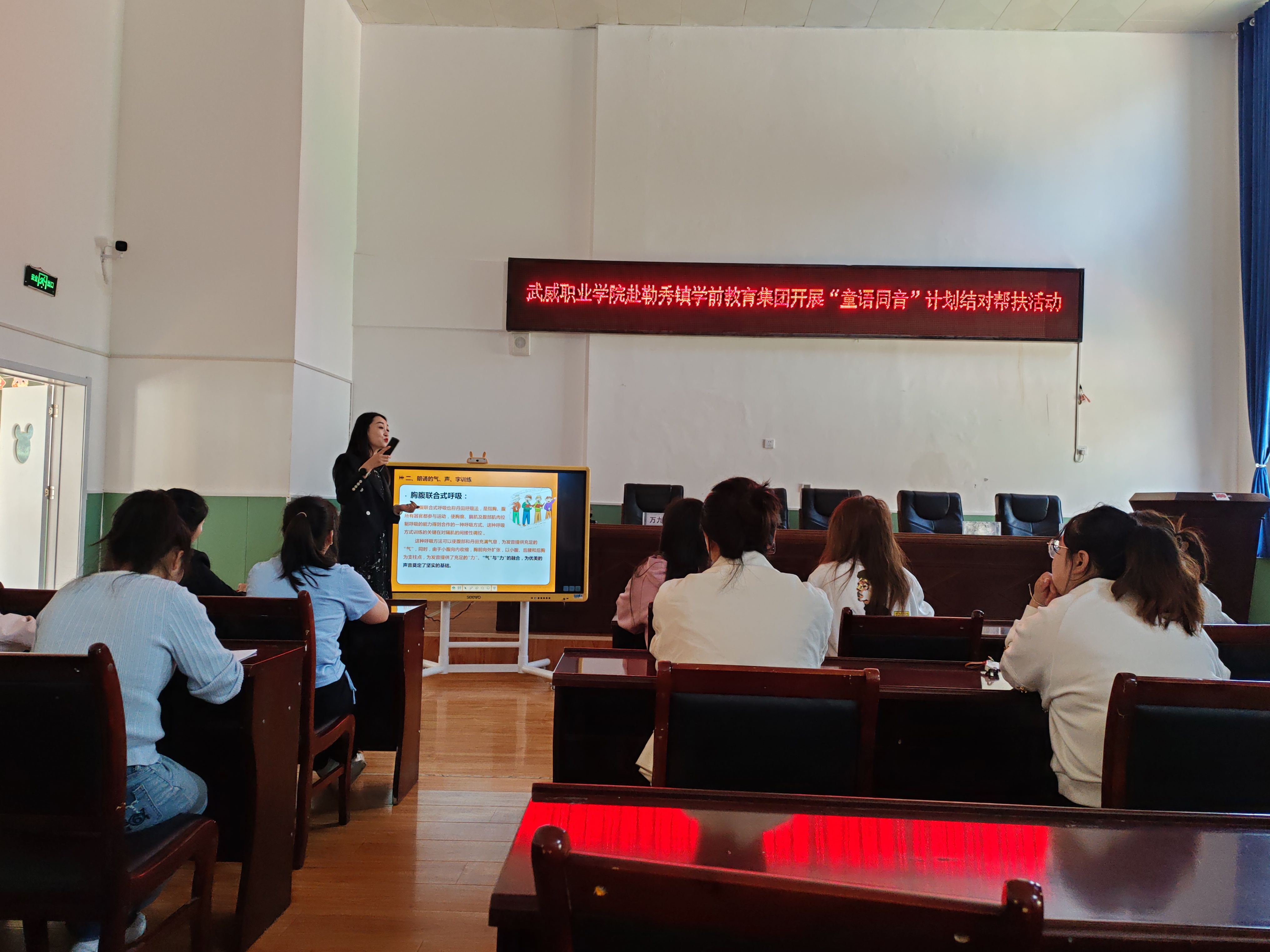 為充分發(fā)揮甘肅省語言文字推廣基地在服務(wù)地方發(fā)展、助力鄉(xiāng)村振興等方面的作用,6月23日,學(xué)校省級(jí)語言文字推廣基地“童語同音”志愿服務(wù)團(tuán)隊(duì)赴甘南藏族自治州勒秀鎮(zhèn)學(xué)前教育集團(tuán)開展“語言文字+技能”方面的培訓(xùn)。