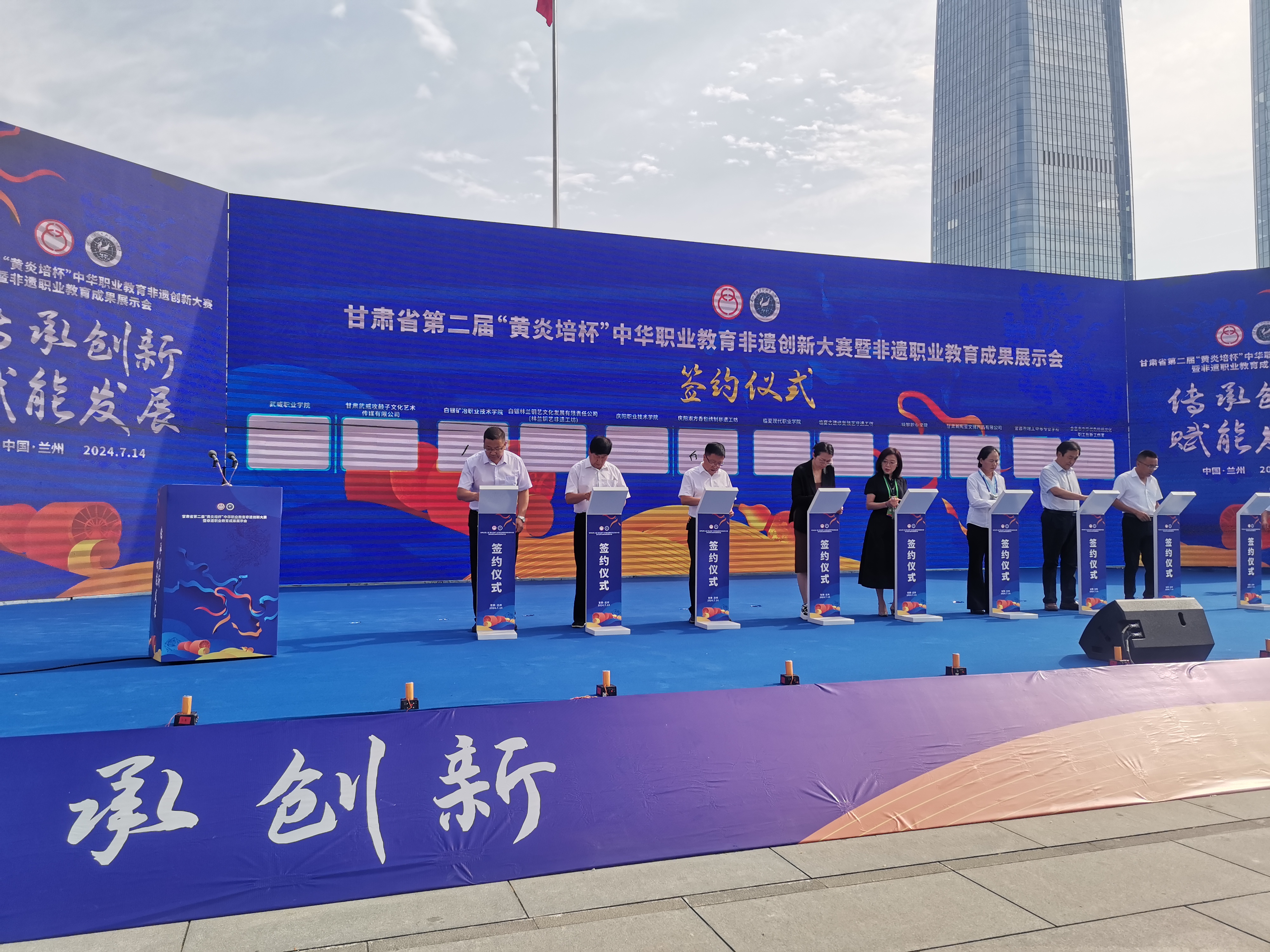 7月14日,甘肅省第二屆“黃炎培杯”中華職業(yè)教育非遺創(chuàng)新大賽暨非遺職業(yè)教育成果展示會在蘭州東方紅廣場舉辦。全省81所院校的240個項目團隊和34家非遺工坊、非遺企業(yè)參賽、參展,參賽項目涵蓋雕刻、剪紙、刺繡、泥塑等多個非遺項目。