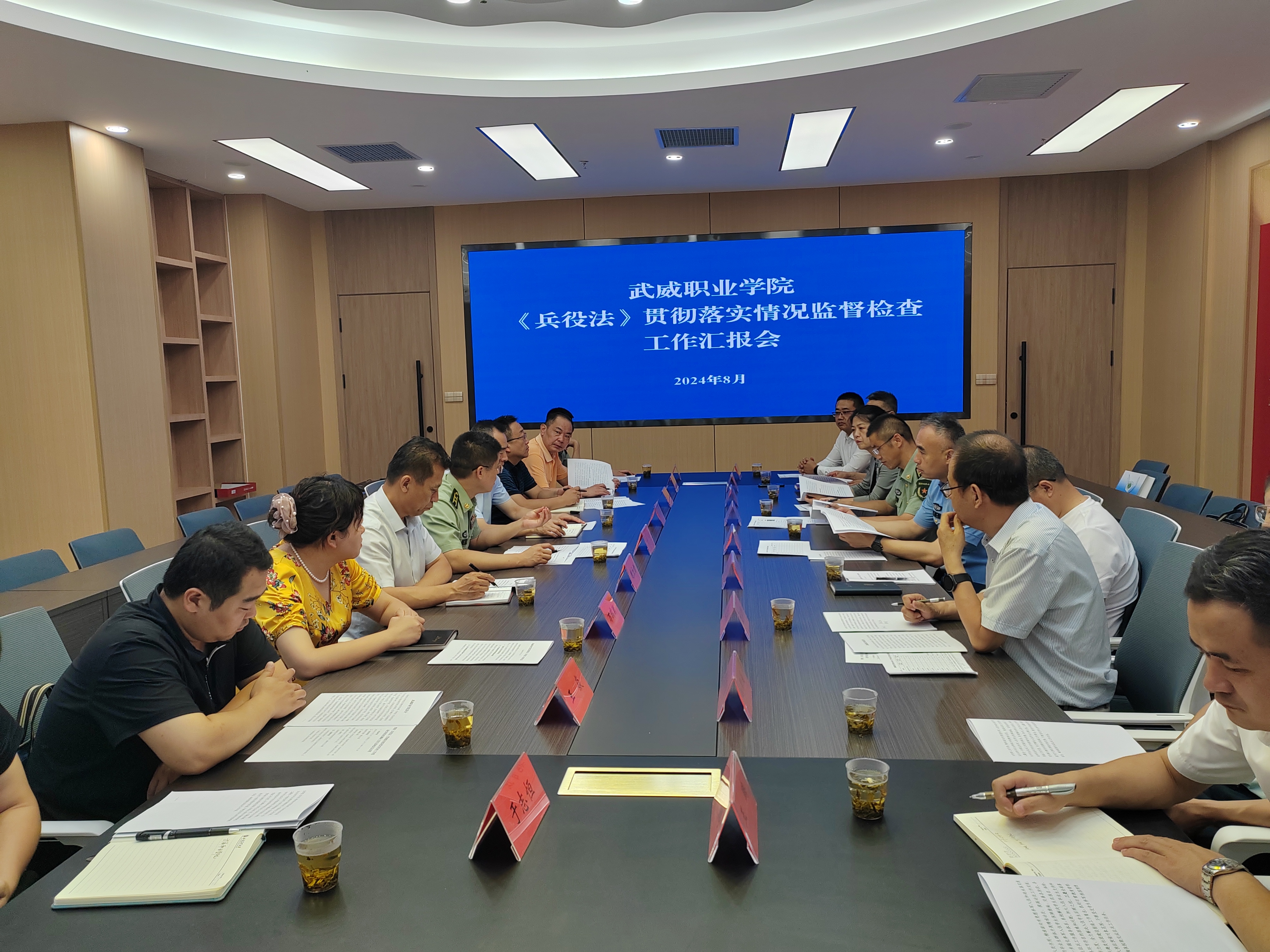 8月2日上午,省級《兵役法》貫徹落實情況監(jiān)督檢查工作組一行9人在甘肅省軍區(qū)動員局征集處程龍?zhí)庨L的帶領(lǐng)下,在武威軍分區(qū)大校副司令員吳沖、武威市司法局副局長黨萬馳和武威市教育局副局長馬曉麗的陪同下,來我校調(diào)研《兵役法》貫徹落實情況。學(xué)校黨委書記王宏,黨委副書記翟存祥,黨委委員、副校長王永緒陪同調(diào)研。