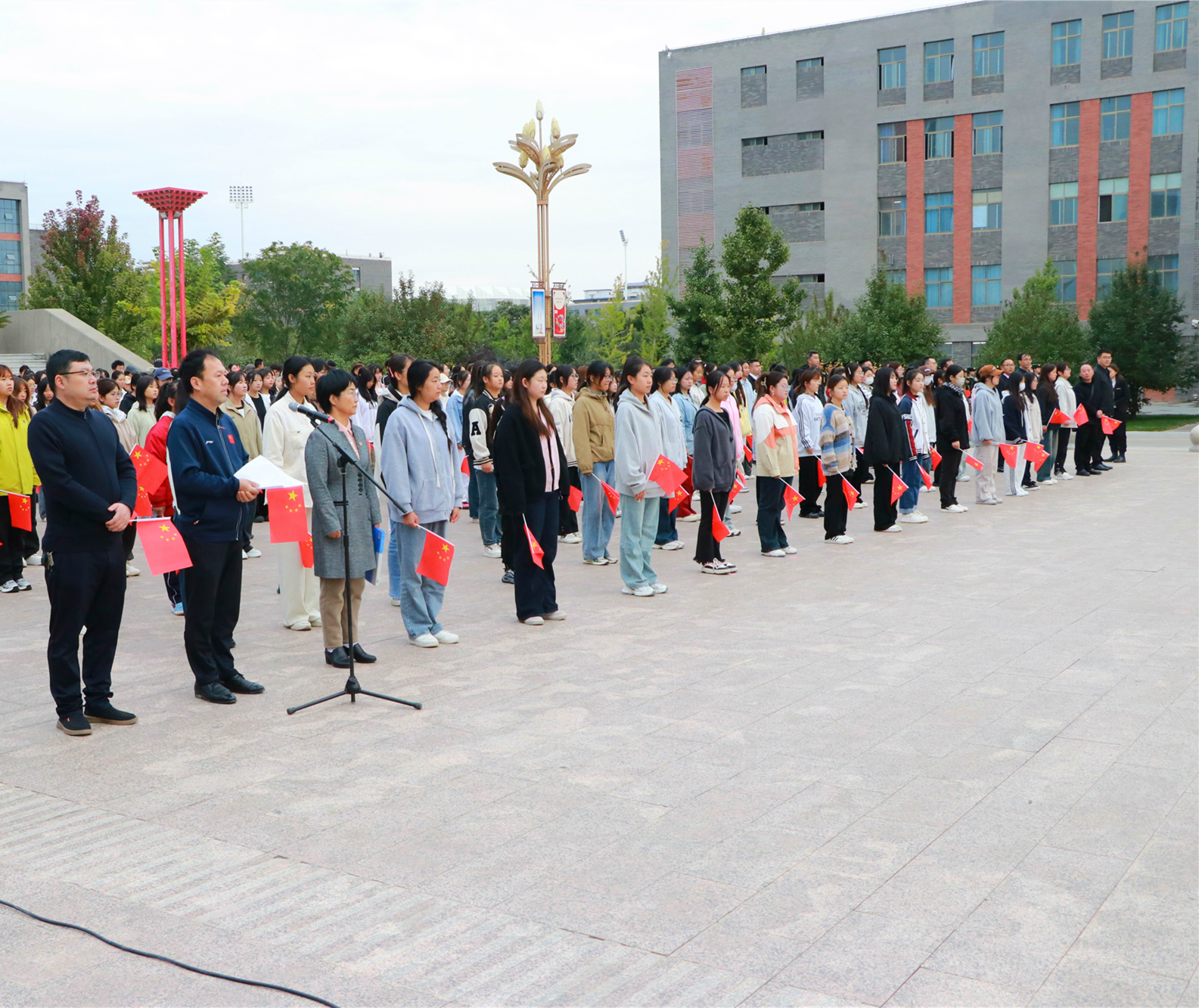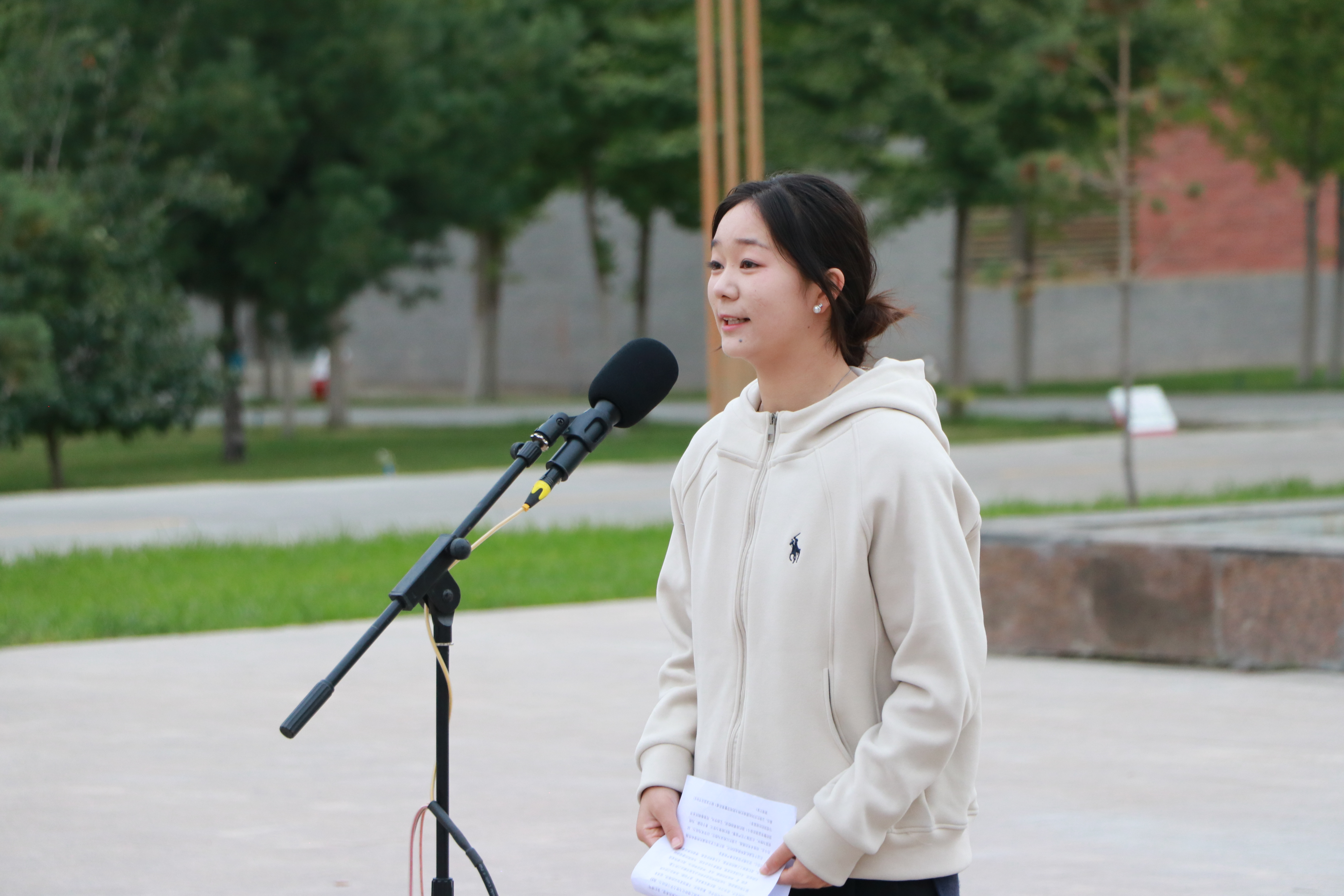 優(yōu)秀學(xué)生代表、藝術(shù)與教育學(xué)院2023級學(xué)前教育專業(yè)的馬青妍同學(xué)進(jìn)行了國旗下的演講,她的演講激勵(lì)著在場的每一個(gè)人,表達(dá)了對祖國的熱愛和對未來的期許。
