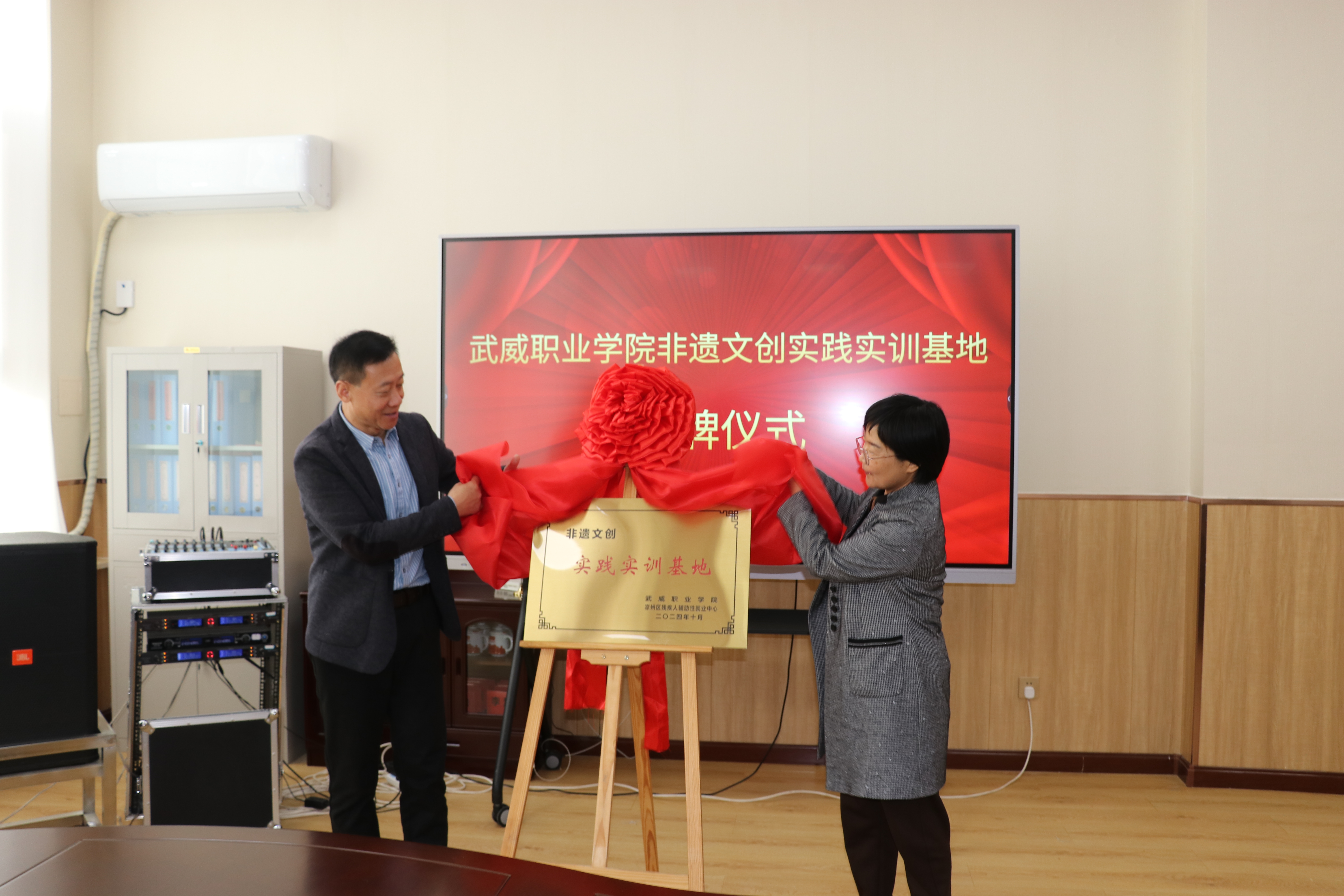 會上,武威市殘疾人聯(lián)合會副理事長柯長文,武威職業(yè)學院黨委委員、副校長何毅為“非遺文創(chuàng)實訓實踐基地”揭牌。
