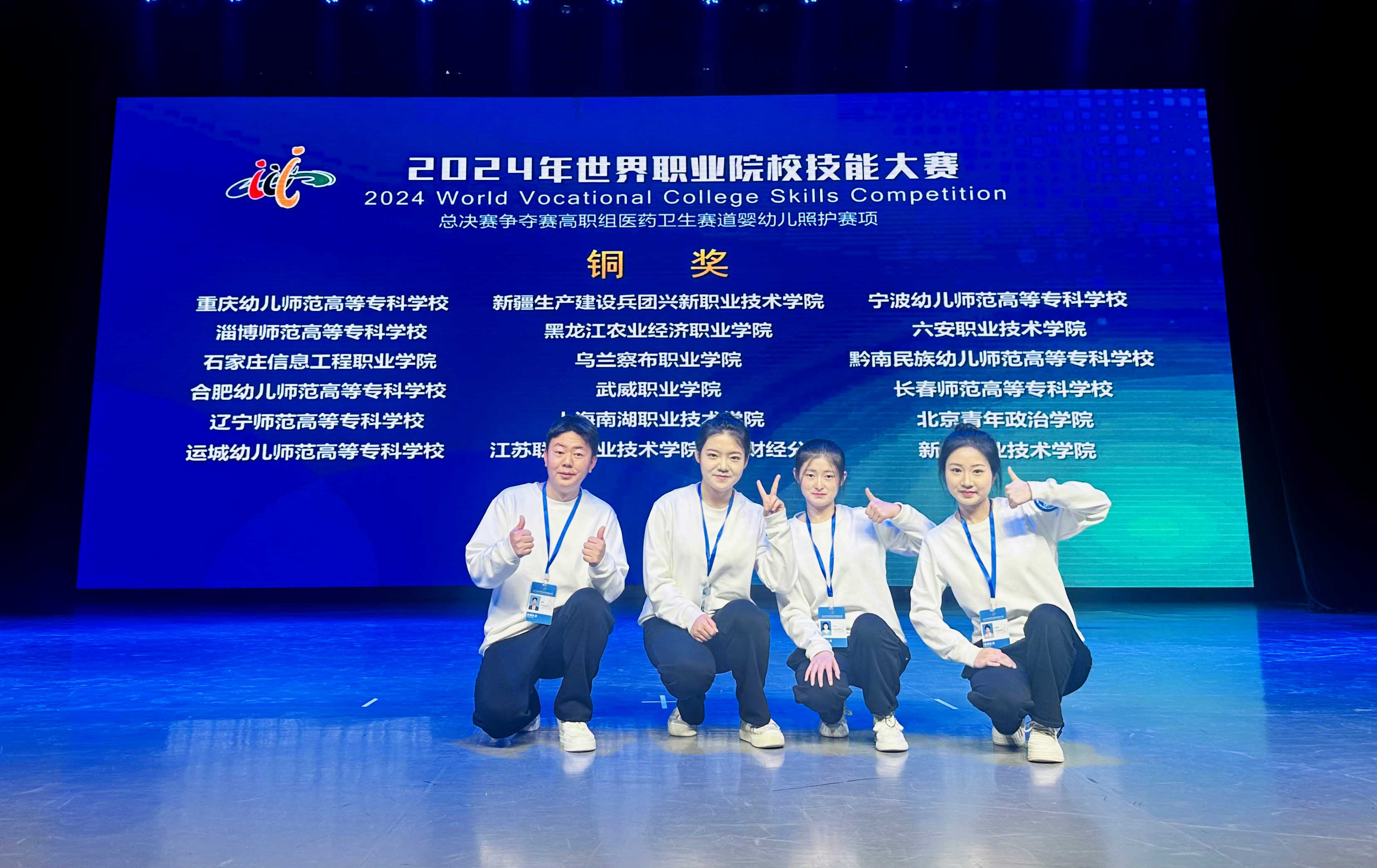 10月26日—10月30日,2024年世界職業(yè)院校技能大賽總決賽爭奪賽高職組醫(yī)藥衛(wèi)生賽道“嬰幼兒照護賽項”在蘭州職業(yè)技術學院舉行。來自全國30個省、市、自治區(qū)的60支參賽隊伍,共213名選手同臺競技。經(jīng)過2天激烈角逐,由學院賈懷玲、郭濤、王巧云、劉麗霞四位同學組成的參賽團隊獲得銅獎。