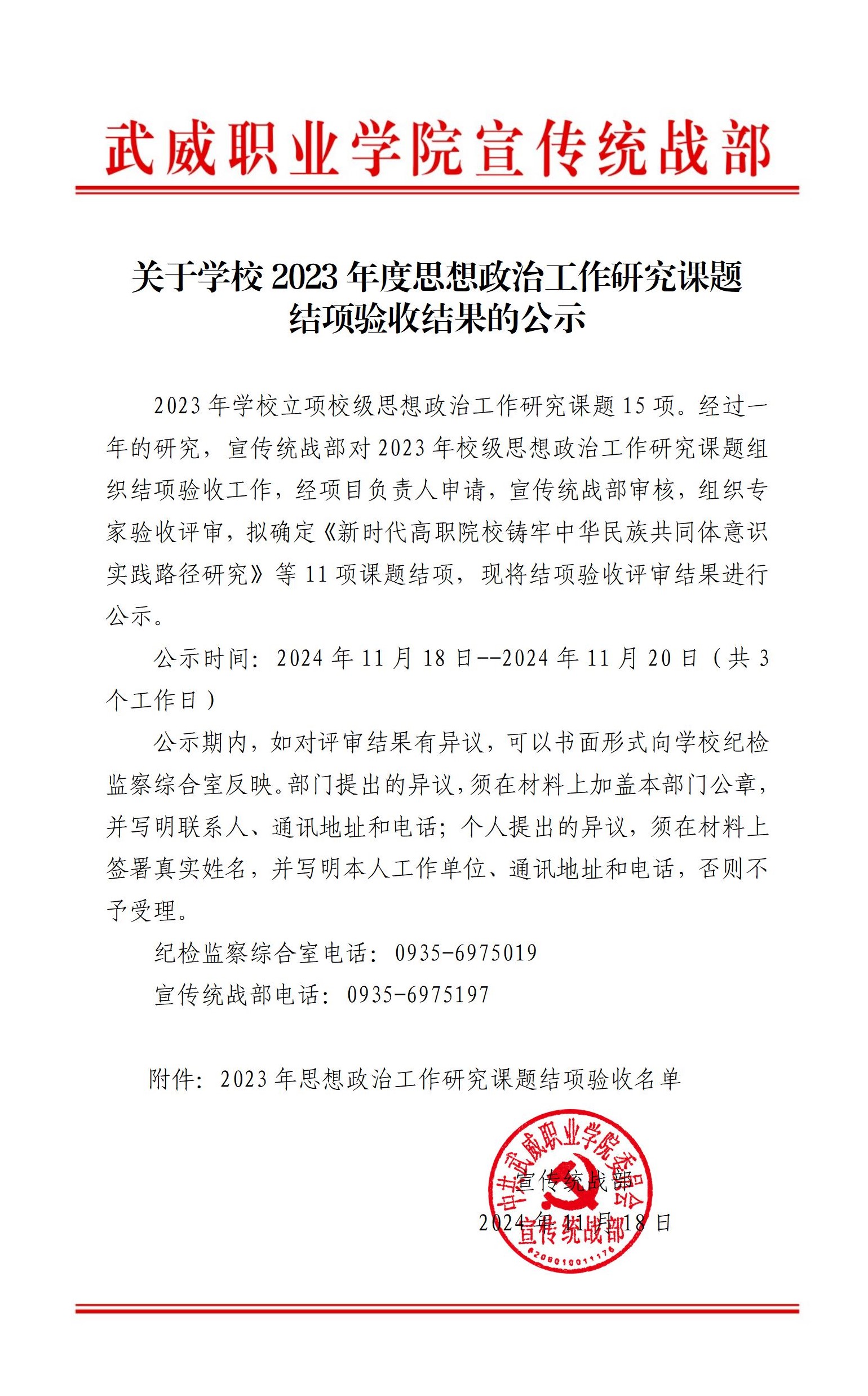 關(guān)于學(xué)校2023年度思想政治工作研究課題結(jié)項驗收結(jié)果的公示