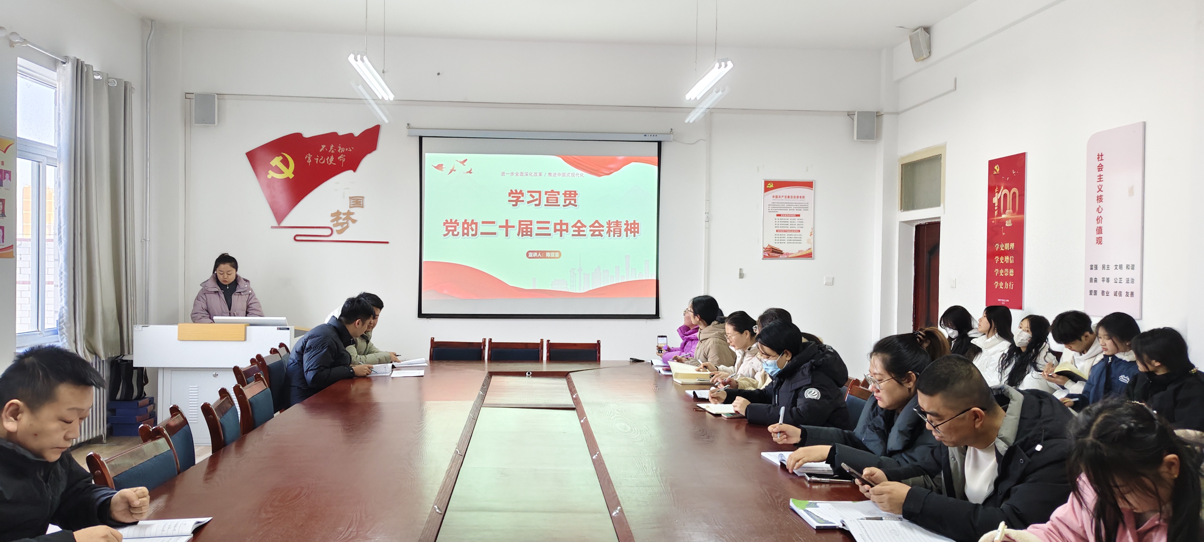 為全面深入學(xué)習(xí)領(lǐng)會(huì)黨的二十屆三中全會(huì)精神,深化教育教學(xué)改革,推進(jìn)教育高質(zhì)量發(fā)展,12月19日,學(xué)校宣講組成員、馬克思主義學(xué)院教師陳亞蕓為藥學(xué)院開(kāi)展黨的二十屆三中全會(huì)精神宣講,藥學(xué)院全體黨員、入黨積極分子共42人參加了宣講會(huì)。