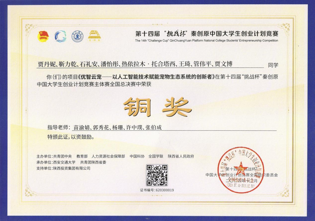 近日,由共青團中央、教育部、人力資源和社會保障部、中國科協(xié)、全國學聯(lián)、陜西省人民政府聯(lián)合主辦的第十四屆“挑戰(zhàn)杯”秦創(chuàng)原中國大學生創(chuàng)業(yè)計劃競賽獲獎名單公布。我校經(jīng)濟管理學院推送的項目《優(yōu)智云寵——以人工智能技術(shù)賦能寵物生態(tài)系統(tǒng)的創(chuàng)新者》首次在主體賽全國總決賽中獲獎,實現(xiàn)了學校這項賽事的歷史性突破。