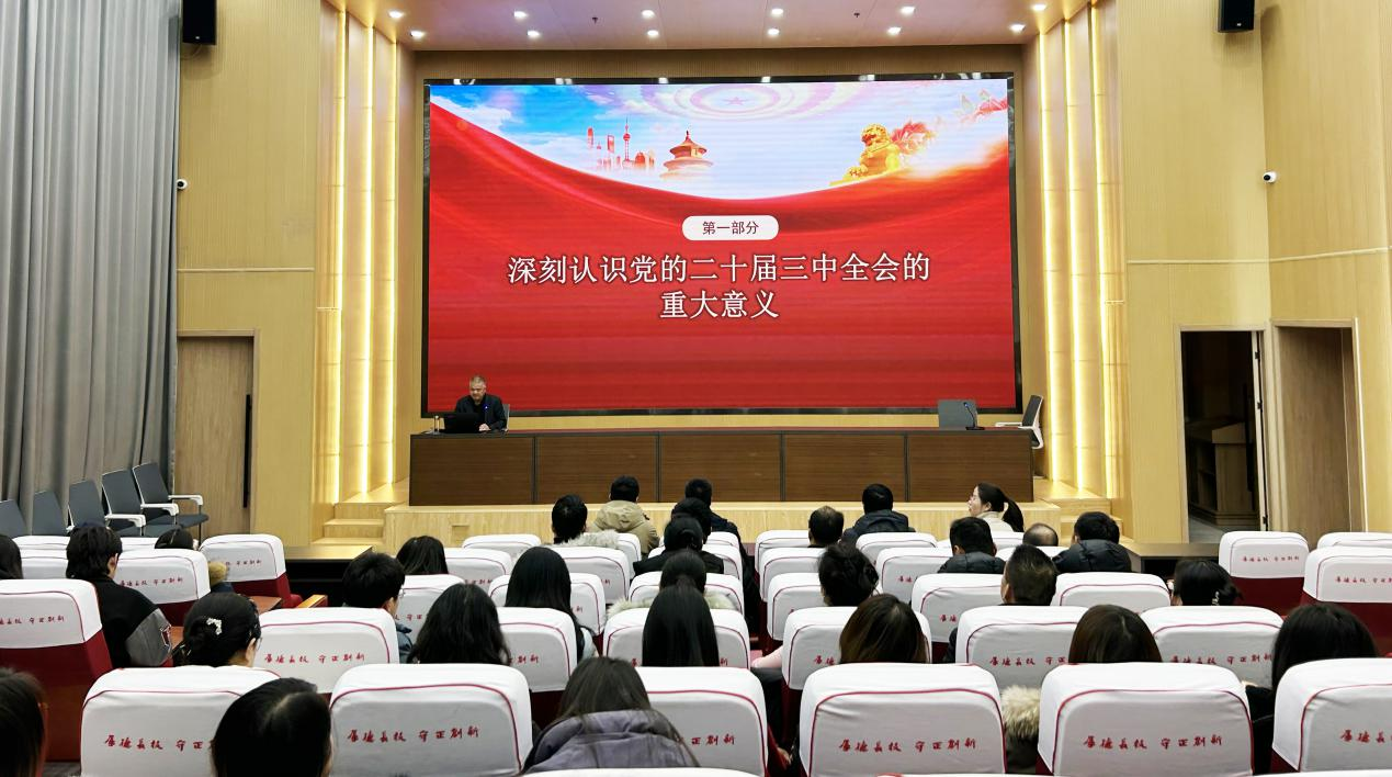 1月3日下午,黨委委員、副校長王守云在能源科技樓學術報告廳為經濟管理學院、藝術與教育學院師生帶來了一場生動而有深度的專題黨課報告會,深入解讀黨的二十屆三中全會精神和習近平總書記視察甘肅重要講話重要指示精神。兩學院黨員、預備黨員、入黨積極分子、師生代表共100余人參加。