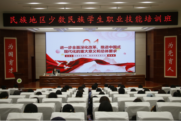 為推動落實國家穩(wěn)崗就業(yè)政策部署,進(jìn)一步提升我校高校畢業(yè)生的綜合就業(yè)能力,2024年全省“三項計劃”試點示范項目“民族地區(qū)少數(shù)民族學(xué)生職業(yè)技能培訓(xùn)”在我校菁英廳正式開班。