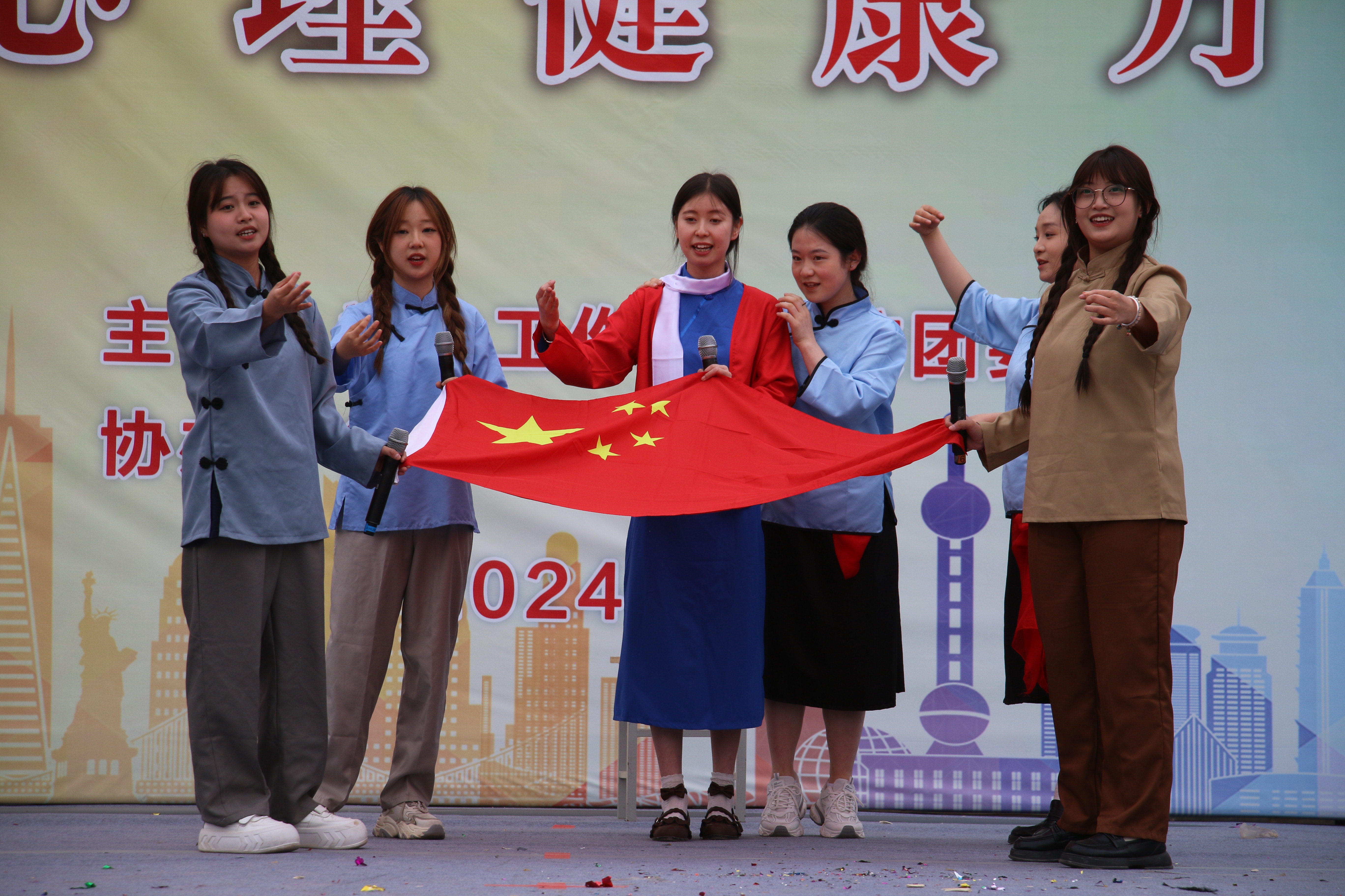 活動現(xiàn)場,各學生社團為現(xiàn)場觀眾帶來了20多個精彩紛呈的文藝節(jié)目,合唱、舞蹈、戲劇、小品、詩朗誦等形式輪番上陣,內(nèi)容豐富多彩,主題陽光向上,充分展示了學生社團的青春魅力;各學生社團還增加了如幸運大轉(zhuǎn)盤、套圈、手工DIY、成語接龍、謎語競猜等一系列有趣好玩的互動游戲,充分展示了我校學生社團活動特色?;顒蝇F(xiàn)場還設(shè)置了拍照打卡墻,吸引眾多師生參與其中拍照打卡留念,現(xiàn)場到處洋溢著歡樂的氣氛。同時,文化節(jié)開幕式活動全程進行了抖音直播,觀看人次達到1萬余人次,點贊突破5000人次,進一步擴大了社團影響力。