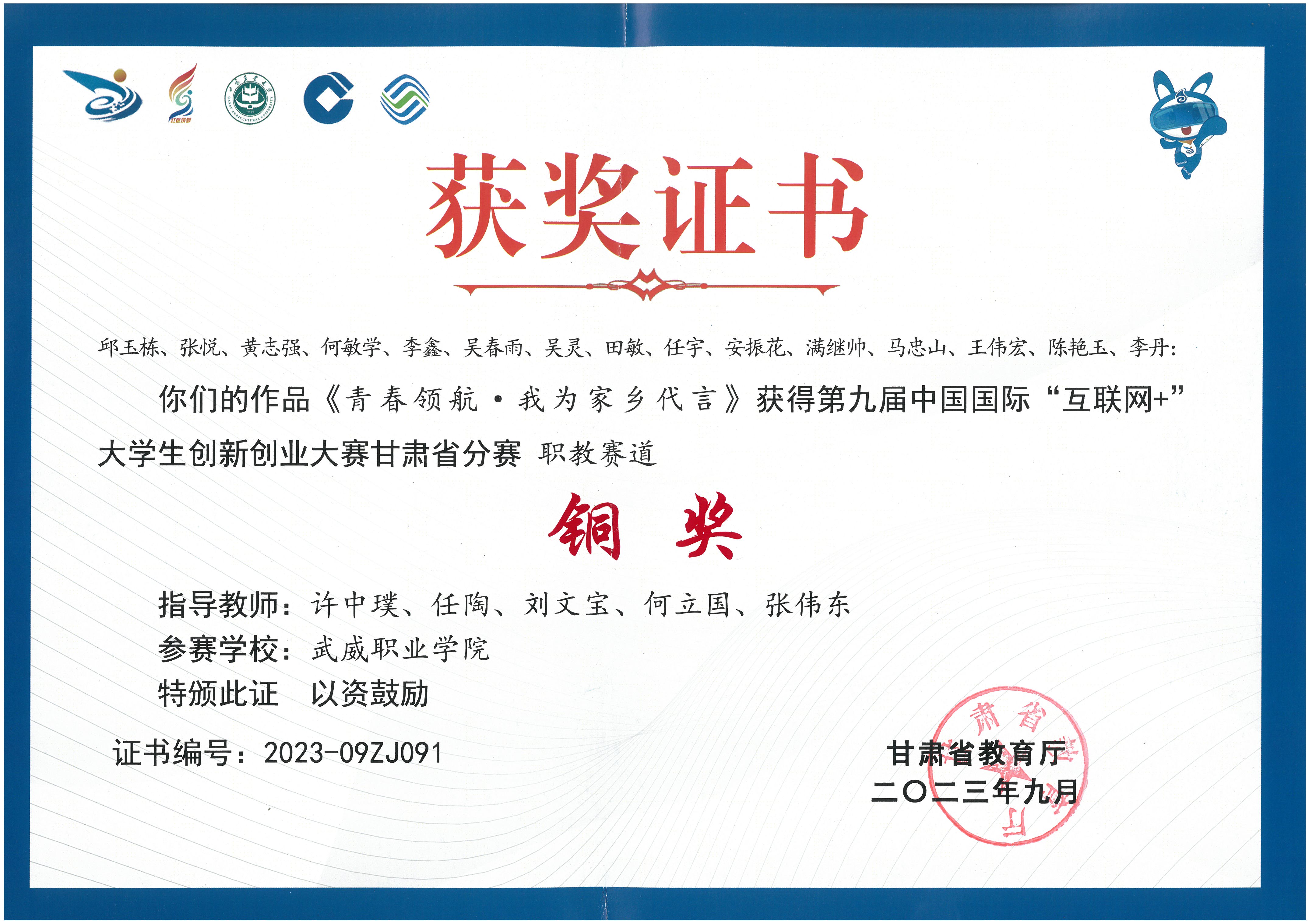 學(xué)生獲第九屆中國國際“互聯(lián)網(wǎng)+”大學(xué)生創(chuàng)新創(chuàng)業(yè)大賽甘肅賽區(qū)銅獎(jiǎng)