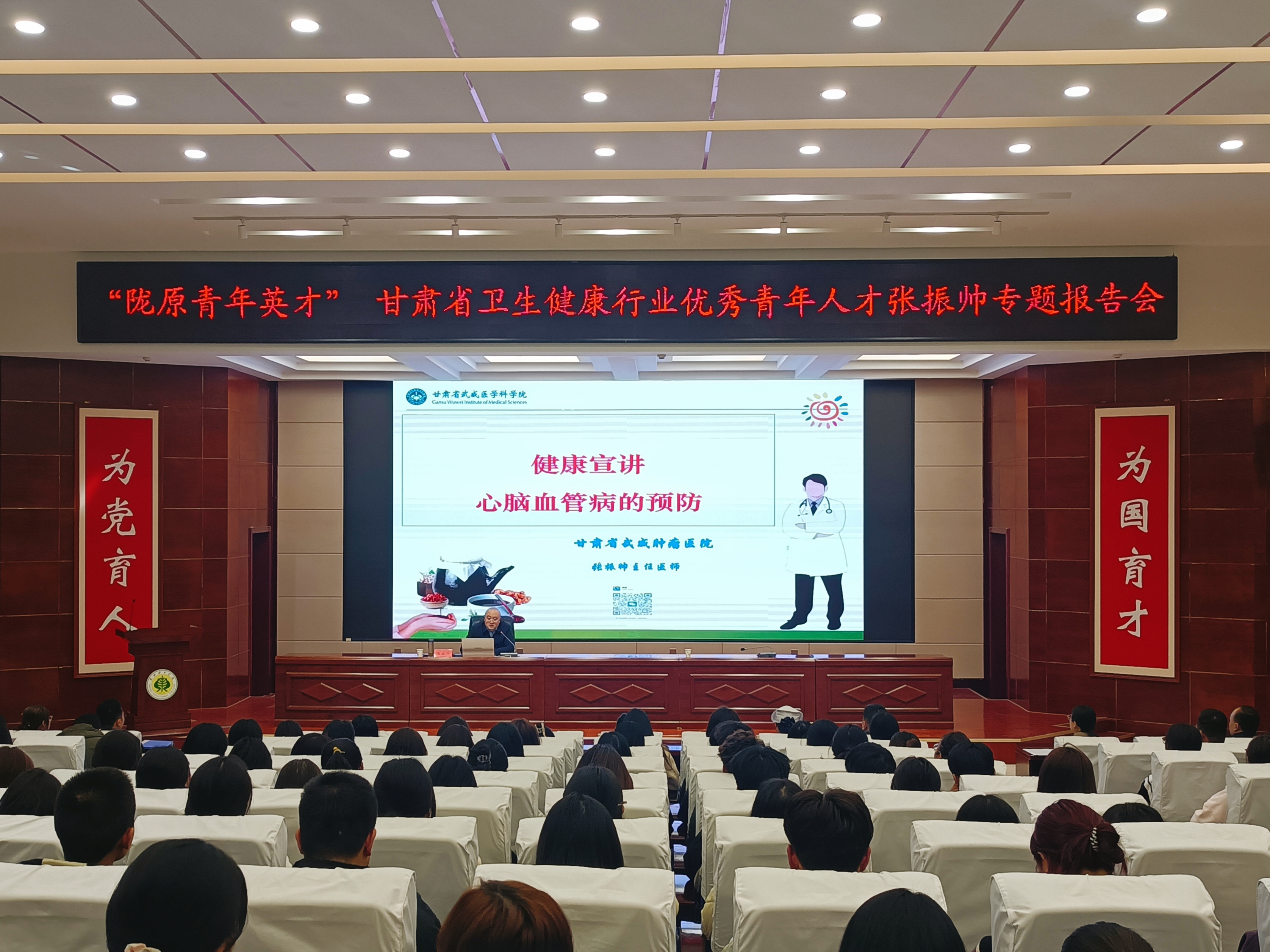 2月27日,學(xué)校邀請甘肅省武威腫瘤醫(yī)院張振帥主任醫(yī)師在學(xué)生發(fā)展中心菁英廳舉辦了中醫(yī)藥經(jīng)典誦讀活動與心腦血管疾病預(yù)防知識講座,護(hù)理學(xué)院學(xué)生團(tuán)支部書記何玉桃等7名教師及2023級護(hù)理大專班全體學(xué)生共同參加。