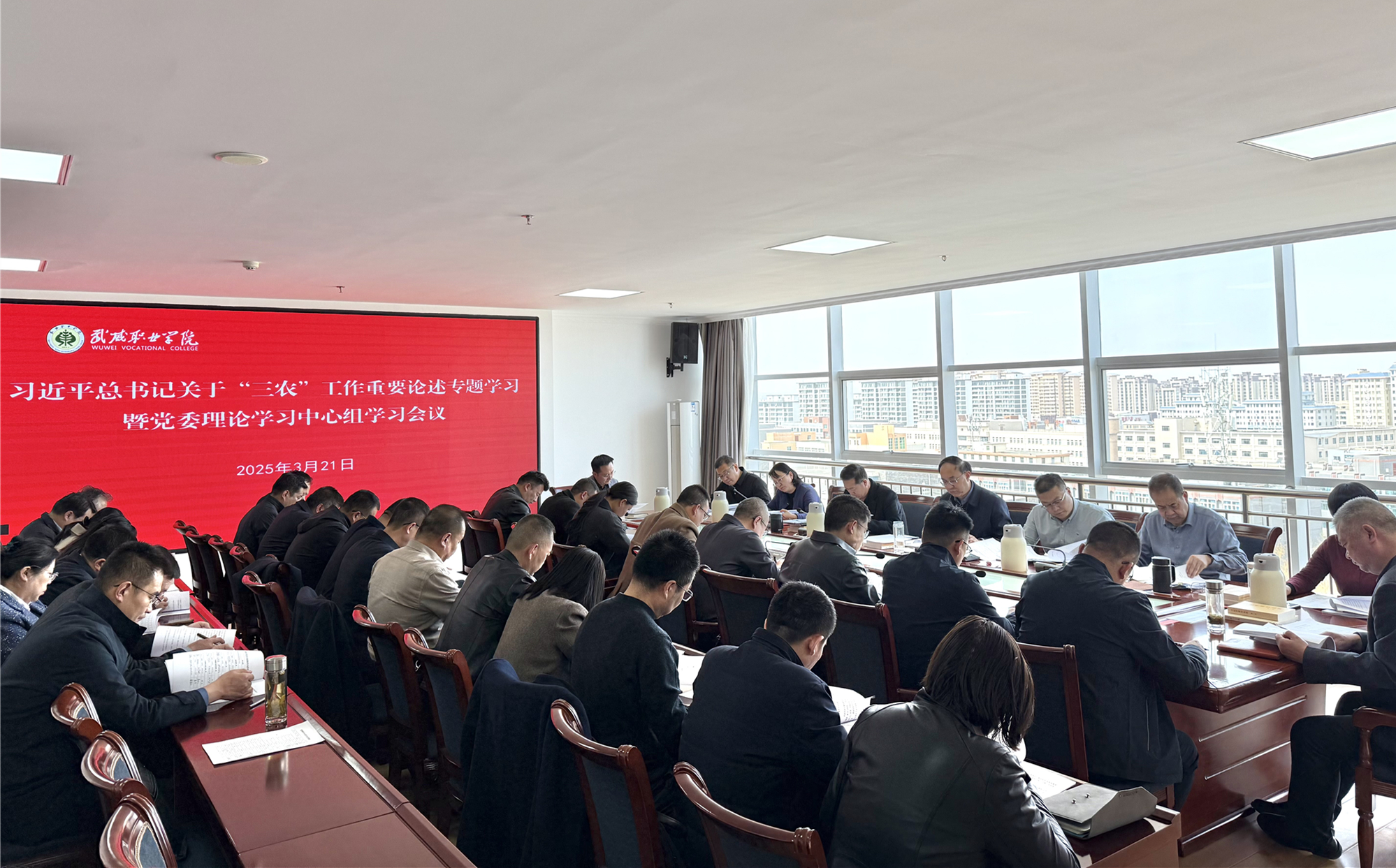 3月21日,學(xué)校召開(kāi)黨委理論學(xué)習(xí)中心組學(xué)習(xí)會(huì)議,專(zhuān)題學(xué)習(xí)研討習(xí)近平總書(shū)記關(guān)于“三農(nóng)”工作重要論述。校黨委理論學(xué)習(xí)中心組成員參加,校長(zhǎng)李海軍,各部門(mén)、二級(jí)學(xué)院主要負(fù)責(zé)人列席。黨委書(shū)記王宏主持會(huì)議并講話。