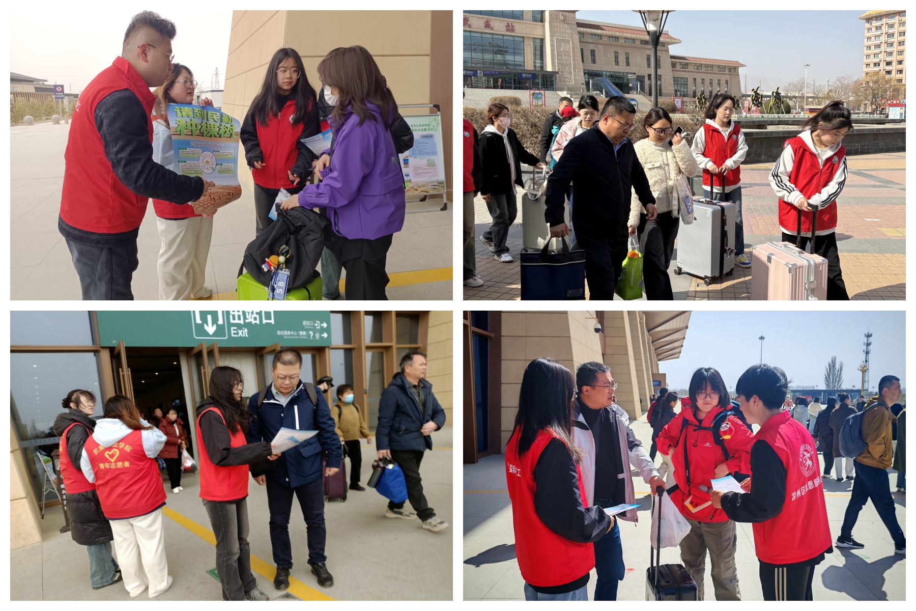 助力“請到民勤種棵樹”活動。宣傳統戰(zhàn)部、校團委組織志愿者在武威高鐵站、火車站、客運中心設立志愿服務站,為前來參加“請到民勤種棵樹”活動的志愿者們提供引導服務,詳細告知前往民勤的乘車路線、換乘信息和注意事項,協助搬運行李,引導他們有序乘車。