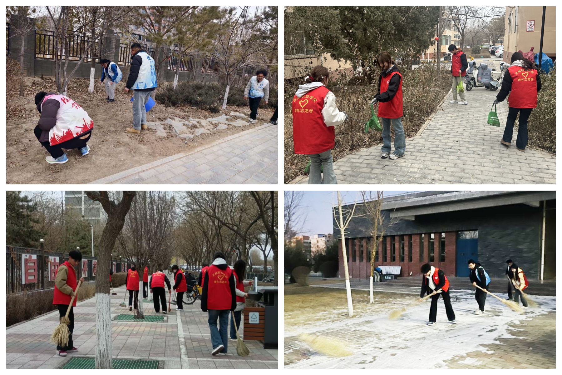 開展美麗校園志愿服務(wù)活動(dòng)。3月5日,校團(tuán)委組織開展“學(xué)雷鋒日”集中活動(dòng),各二級學(xué)院320余名志愿者在學(xué)校東門及北門外周邊區(qū)域開展衛(wèi)生清掃,清掃人行道枯葉、擦洗公交站臺(tái)、清理綠化帶雜物、擺放共享單車、撿拾地面煙頭、擦洗垃圾箱、條凳及綠化帶隔離欄。