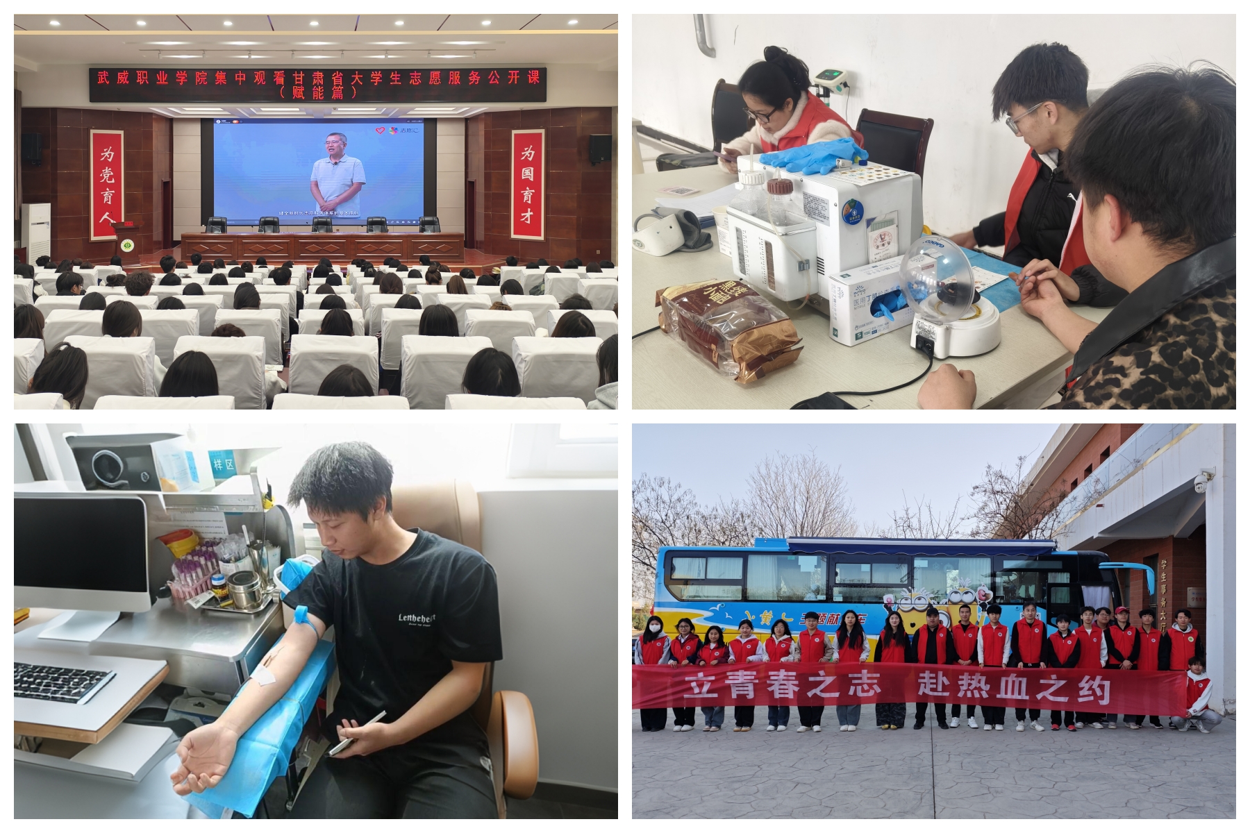 開展無償獻(xiàn)血活動(dòng)。3月24日,校團(tuán)委邀請市中心血站工作人員在學(xué)校開展“愛心無界 獻(xiàn)血有愛”無償獻(xiàn)血知識(shí)講座,220名有獻(xiàn)血意向的同學(xué)聆聽講座。3月26日-28日,校團(tuán)委聯(lián)系市中心血站在學(xué)校開展“立青春之志 赴熱血之約”無償獻(xiàn)血活動(dòng),100名志愿者累計(jì)捐獻(xiàn)熱血20700ml,為學(xué)校無償獻(xiàn)血事業(yè)做出突出貢獻(xiàn),為健康中國目標(biāo)貢獻(xiàn)青春力量。