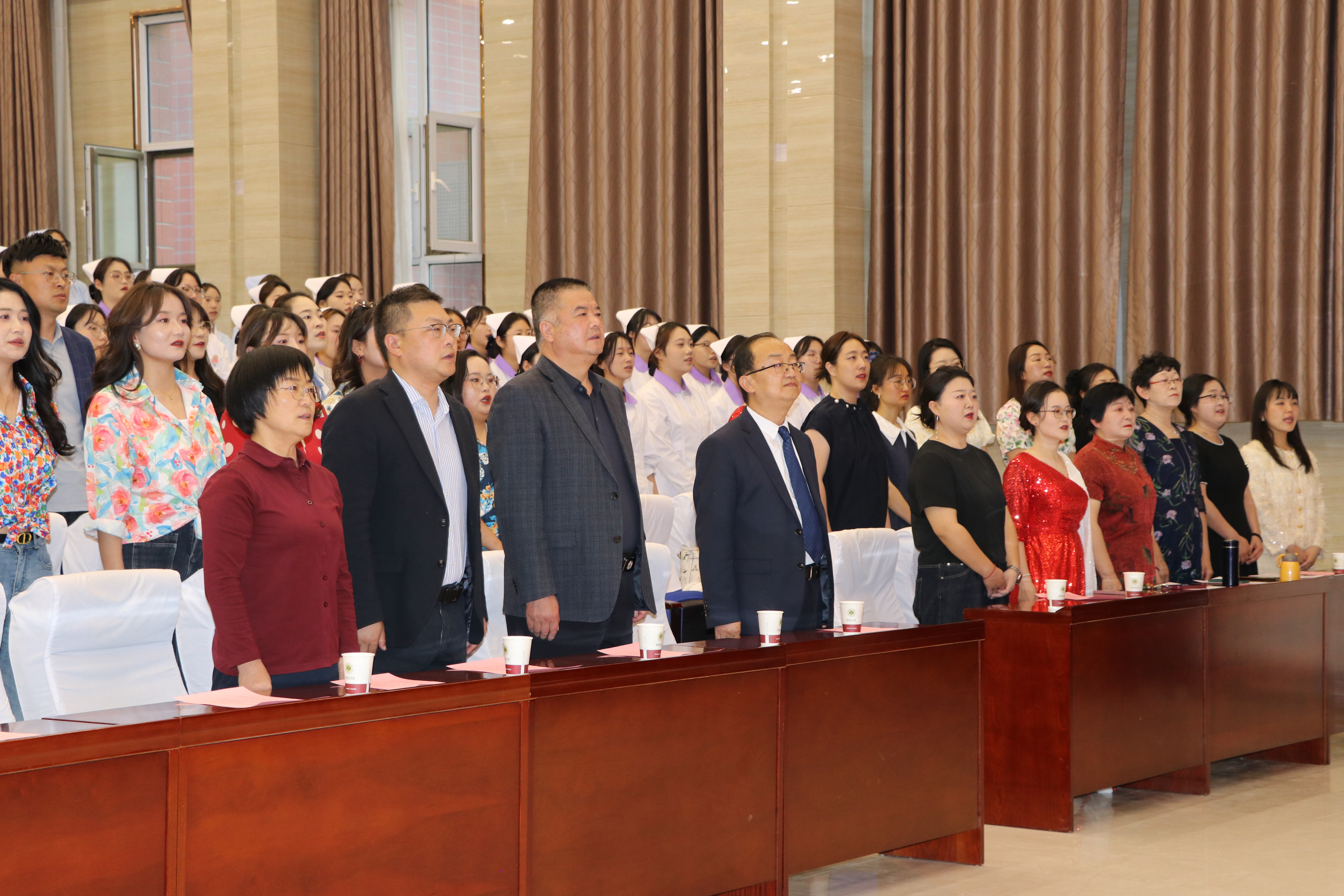 為慶祝第114個(gè)國際護(hù)士節(jié),弘揚(yáng)“敬佑生命、救死扶傷”的職業(yè)精神,護(hù)理學(xué)院于5月12日在學(xué)校菁英廳舉行5.12國際護(hù)士節(jié)文藝匯演。校長李海軍,黨委委員、副校長何毅、王守云出席活動(dòng)。護(hù)理學(xué)院師生代表共200余人參加了文藝匯演活動(dòng)。